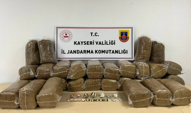 Kayseri İl Jandarma Komutanlığı ekiplerince yapılan çalışmalarda piyasa değeri 200 bin TL olan 183 kilo tütün ele geçirilirken 1 kişi yakalandı.