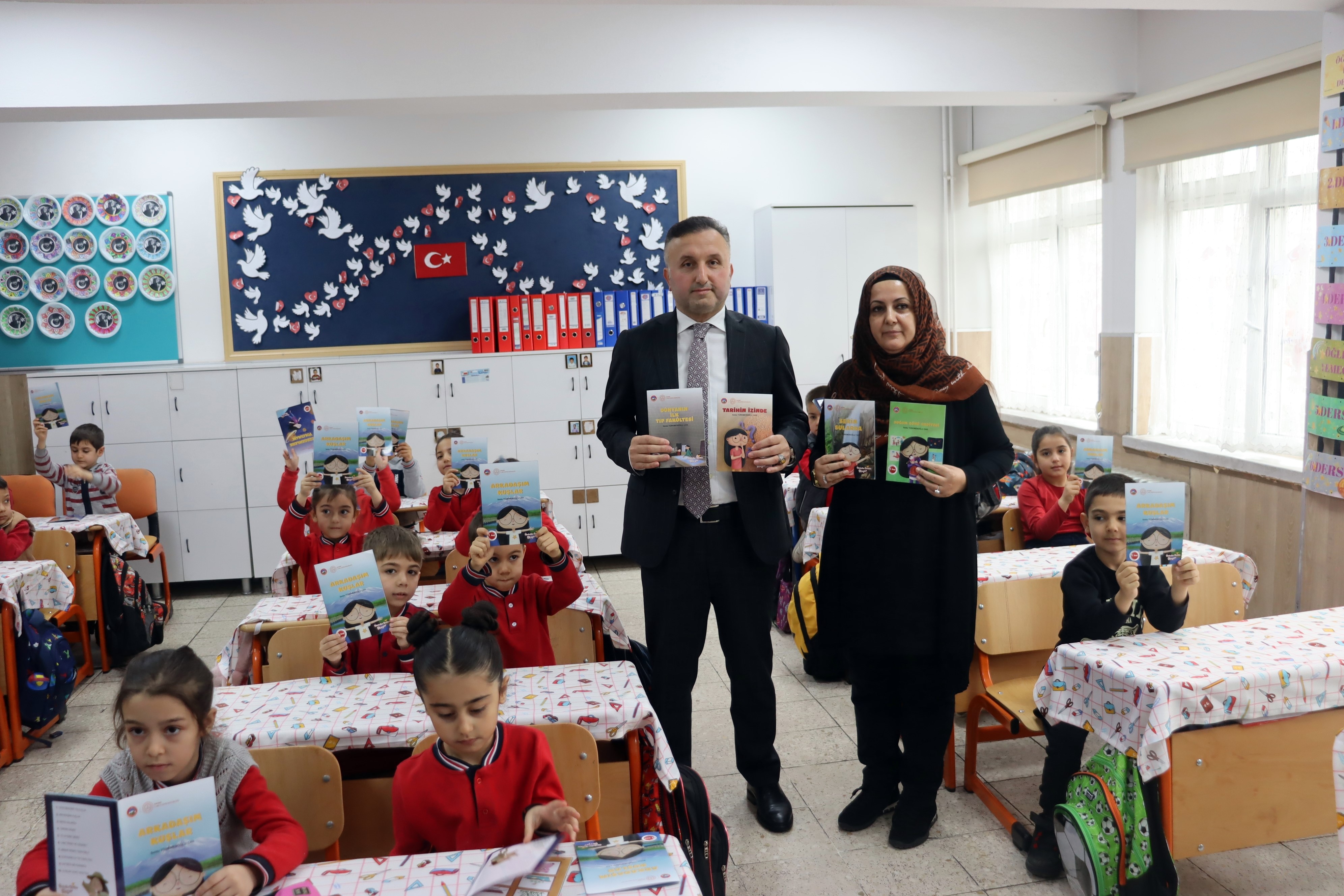 Kayseri İl Millî Eğitim Müdürlüğü'nce yürütülen Ayraç Projesi kapsamında 18 öğretmen kentin tarihi yapıları, doğal güzellikleri, gelenekleri ve kültürel mirasını anlatan 40 kitabı kaleme aldı. Birbirinden güzel hikayelerin yer aldığı kitapların animasyon hali de hazırlandı. İlkokul seviyesinde 4 bin 500 sınıfa ulaştırılan kitapların dijital ortamda da erişime açılması sayesinde de karbon ayak izi en aza indirilerek çevre duyarlılığına katkı sağlandı. Talas ilçesindeki Fatma Zehra Dülgeroğlu İlkokulu'nda düzenlenen lansman törenine katılan İl Milli Eğitim Müdürü Coşkun Esen, öğrenciler ile birlikte kitapları okuyarak animasyonu izledi. Ardından konuşan Esen, Kayseri'de görev yapan ve 18 öğretmenden oluşan ekip tarafından hazırlanan eserler, öğrencilere teslim edildiğini söyleyerek, "Bugün burada başlatmış olduğumuz İlkokullar Birlikte Okuyor Projesi, ilimizin tüm okullarında bugünden itibaren yaygınlaştırılmış olacaktır. Bugün burada sadece bir proje başlangıcı yapmıyoruz. Çocuklarımızı şehrimizin tarihi, kültürü, sanatı ve bütün değerleriyle buluşturmanın gayreti içerisindeyiz. İlimiz genelinde kitap okuma farkındalığını artırmak amacıyla yürüttüğümüz Ayraç Projesi'nin bir alt projesi olarak ortaya çıkan İlkokullar Birlikte Okuyor Projesi kapsamında, öğretmenlerimiz tarafından yazılmış 40 kitaptan bahsediyoruz. Her sınıf düzeyi için 10 kitap olmak üzere; ilkokul 1, 2, 3 ve 4. sınıflar için ayrı ayrı hazırlanmıştır. Bu kitapların baskıları yapılarak ilkokullarımızda bulunan 4 bin 500 dersliğe tüm kitaplarımız dağıtılmıştır. Bugün projemizin farklı bir boyutunu da hayata geçirmiş bulunuyoruz. Henüz tam okuma becerisi kazanmadığını düşündüğümüz ilkokul 1. sınıflarımız için yazılan kitaplarımız, animasyon filmi eşliğinde sesli kitaba dönüştürülmüştür. Etkileşimli tahtalara PDF formatında yüklenerek hem dijital hem de etkileşimli bir ortam oluşturulmuştur. İlkokul 1. sınıflarımız kitaplarını hem sesli anlatımını hem de animasyon filmi şeklindeki görsellerini izlemiş oldular. Çocuklarımız her sabah derse başladıklarında; şehrimizin tarihini, kültürünü, sanatını, sokaklarını, caddelerini, örf ve adetlerini anlatan ve öğretmenlerimiz tarafından yazılmış bu kitapların sesli kitap versiyonlarını etkileşimli tahtalardan izlemiş olacaklardır. Kitaplarımızın yazımında emeği geçen 18 arkadaşımız başta olmak üzere; baskısından sistemine, grafik tasarımından sonuçlandırılmasına ve tüm okullarımıza dağıtılmasına kadar emeği geçen tüm ekip arkadaşlarımızı ve Ar-Ge ekibimizi yürekten kutluyorum. Projemizin tüm okullarımıza hayırlı olmasını diliyorum" ifadelerini kullandı.