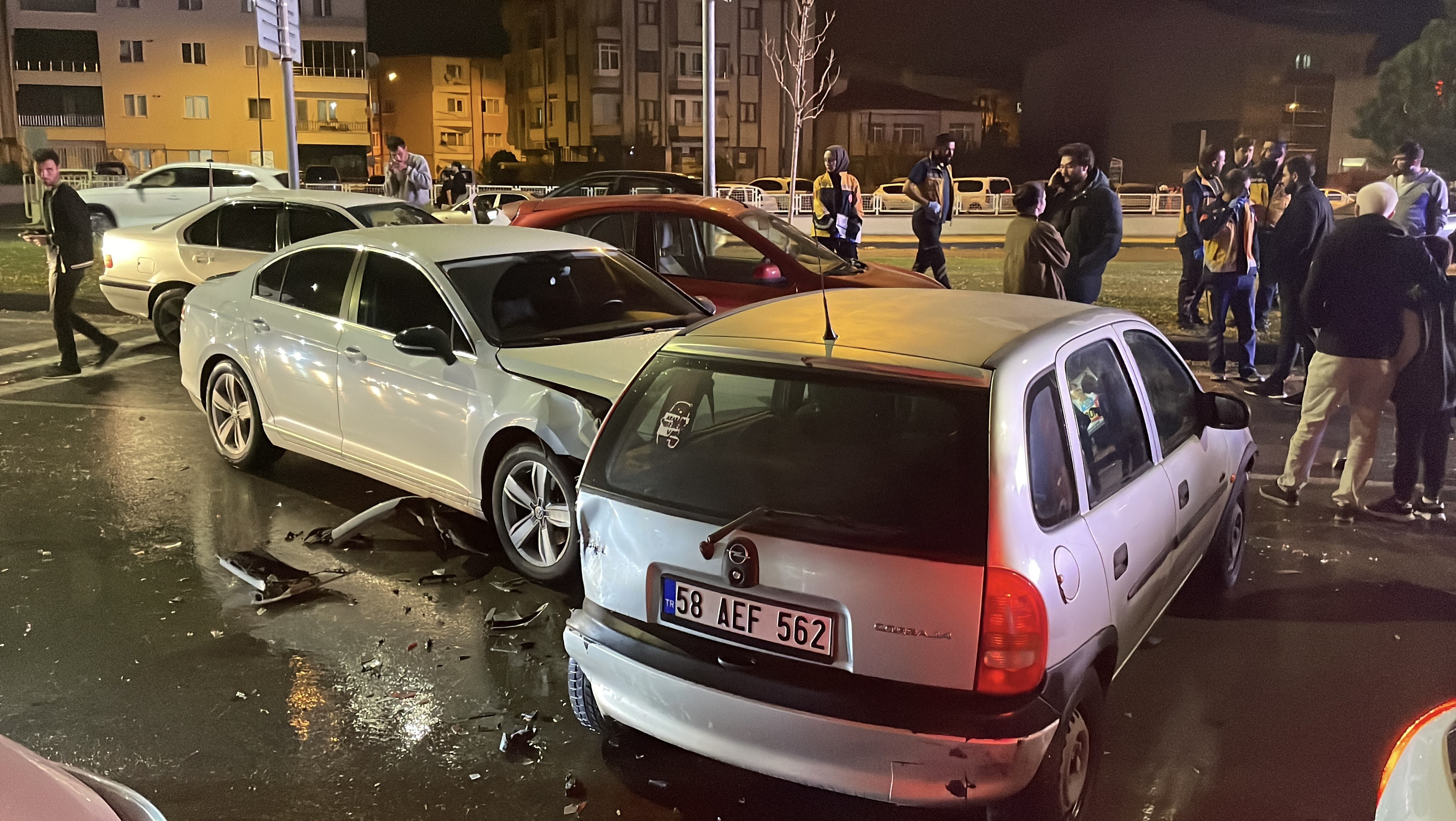 Edinilen bilgiye göre olay, Sivas-Kayseri karayolu, Aksu yol ayrımında meydana geldi. İddiaya göre, E.E. idaresindeki 16 ASN 532 plakalı BMW marka otomobil, hızla kırmızı ışıkta bekleyen araçların arasına daldı. Olayda 58 AEF 562 plakalı Opel marka otomobil, 58 AGY 123 plakalı Opel marka otomobil, 58 BU 606 plakalı Nissan marka otomobil ve 58 AAH 302 plakalı Volkswagen marka otomobil hasar gördü. Kazada 16 ASN 532 plakalı otomobilin sürücüsü yaralandı. Yaralı sürücü ambulansla hastaneye kaldırıldı. Kazayla ilgili inceleme sürüyor.