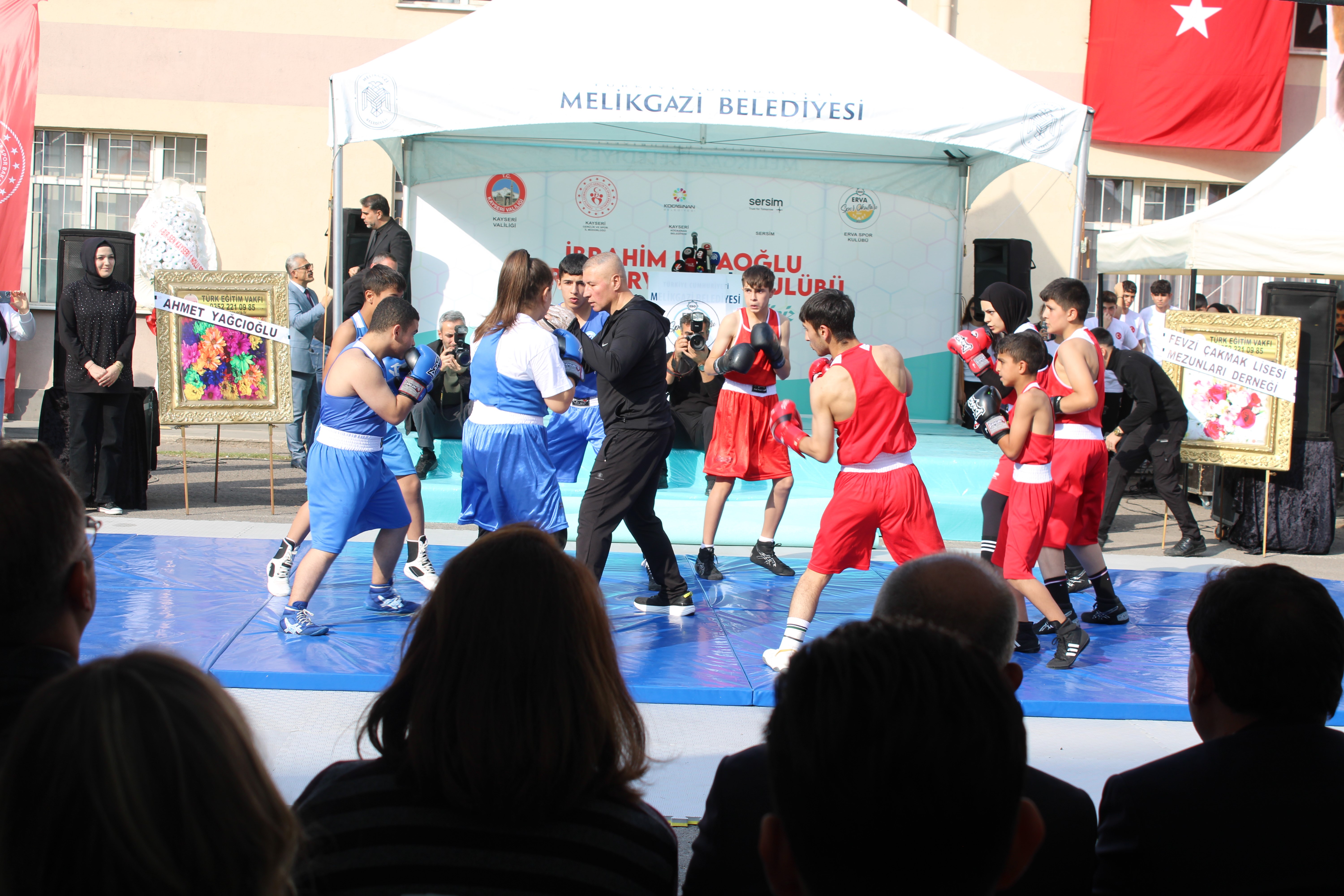 Açılış konuşmalarının ardından İl Müftüsü Durmuş Ayvaz'ın duaları eşliğinde 62. ERVA SERSİM İbrahim Ustaoğlu Spor Okulunun açılışı gerçekleştirildi. Törende ERVA sporcuları, boks ve güreş gösterilerinde bulundu.