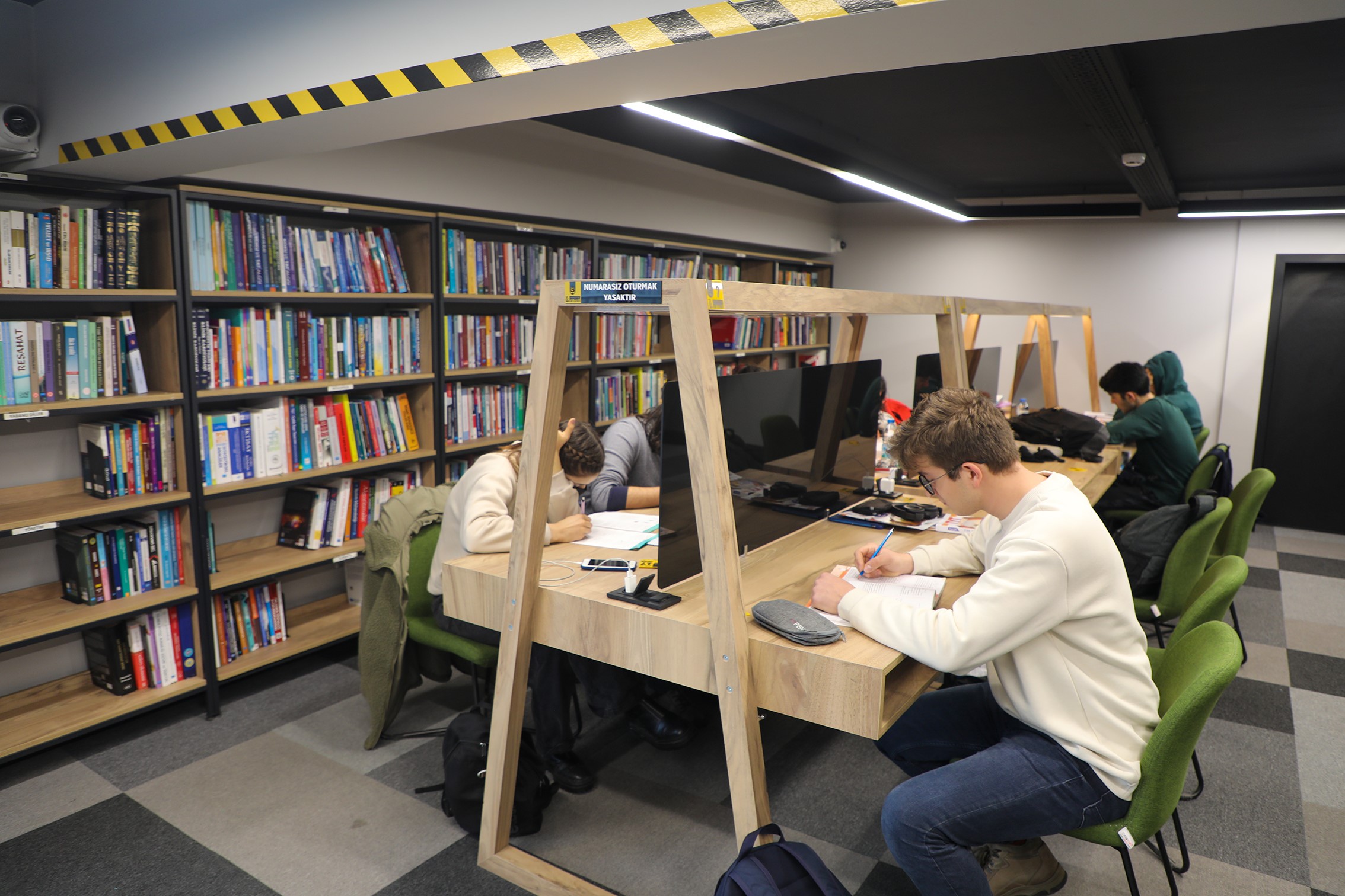 Öğrenci yurtlarının tam ortasındaki konumu ile ulaşım kolaylığı da bulunan kütüphanede 24 saat hizmet veren kafe, kitap kafe, sesli kütüphane, sessiz kütüphane, akademik sessiz kütüphane, çocuk bölümü, yabancı dil kursu derslikleri, konferans salonu ve fuaye alanı yer alıyor.