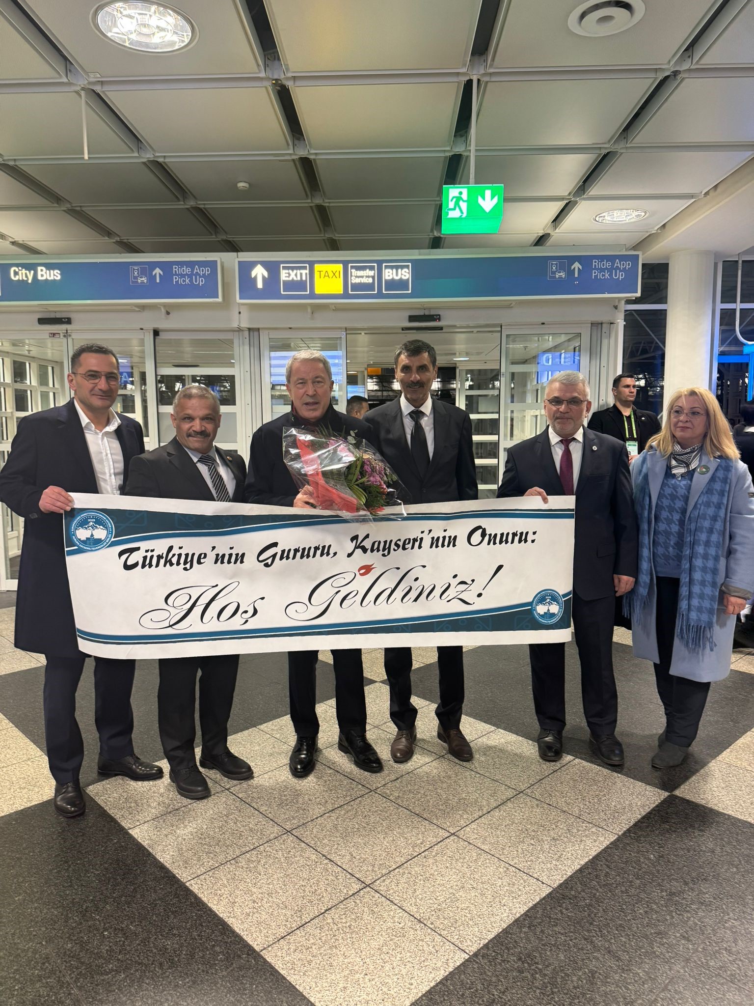 Maliye Bakanı Mehmet Şimşek, TBMM Milli Savunma Komisyonu Başkanı ve AK Parti Kayseri Milletvekili Hulusi Akar ile önceki dönem Dışişleri Bakanı ve AK Parti Milletvekili Mevlüt Çavuşoğlu’nun yer aldığı heyet, Avrupa’daki Kayserili iş dünyasının önde gelen isimleri Avrupa Kayserili İşverenler Birliği Kurucu Genel Başkanı Ali Hızar Akib Genel Başkan Yardımcısı Hacı Mehmet Batagan ve Akib Spor Komisyon Başkanı Hidayet Yılmaz tarafından büyük bir gurur ve heyecanla karşılandı. Münih Havalimanı’nda gerçekleşen karşılamada; Avrupa Kayserili İşverenler Birliği (AKİB) Kurucu Genel Başkanı Ali Hızar, AKİB Genel Başkan Yardımcısı Hacı Mehmet Batagan ve AKİB Spor Komisyonu Başkanı Hidayet Yılmaz hazır bulundu. Samimi ve gurur dolu anların yaşandığı karşılamada, özellikle Kayseri Milletvekili Hulusi Akar için açılan pankart dikkat çekti.