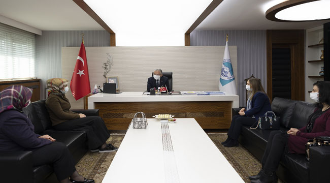 Başkan Dr. Büyükkılıç, ziyaretten duyduğu memnuniyeti dile getirerek, görevlerine yeni başlayan Melikgazi Kadın Kolları Başkanı Gülay Tuğlu ve Kocasinan Kadın Kolları Başkanı Nimet Ekinci’yi tebrik etti.