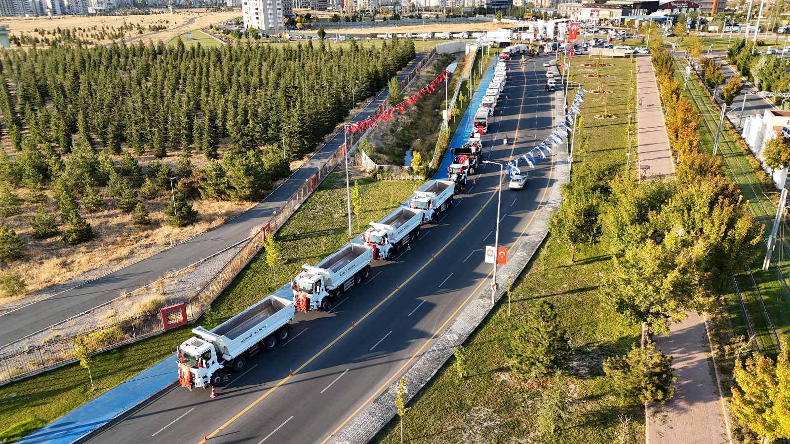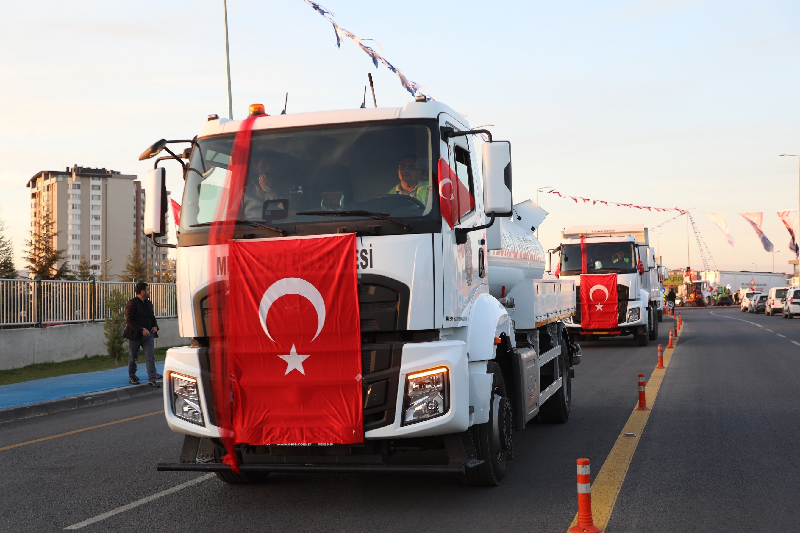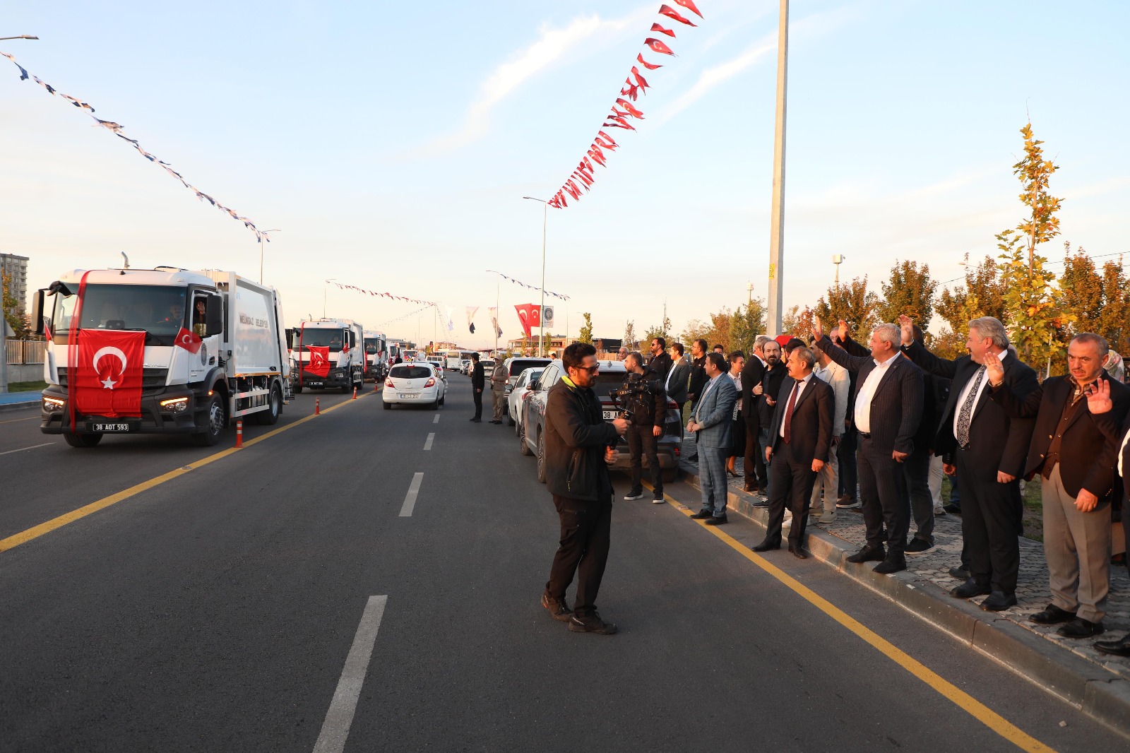 İlçede birçok alanda hizmet ederek her yıl Melikgazi'nin daha da geliştiğini ve değiştiğini söyleyen Melikgazi Belediye Başkanı Doç. Dr. Mustafa Palancıoğlu, "Melikgazi Belediyemizde çalışmalarımıza büyük bir gayretle devam ediyoruz. Bugün burada yeni aldığımız 40 adet aracımız ve 11 adet yeni çim biçme traktörünün tanıtımını gerçekleştiriyoruz. Yeni aldığımız bu araçlarımızın değeri yaklaşık 242 milyon TL. Belediyemizde toplam 447 adet araç var. Bu araçların 130'unu geçtiğimiz seneye kadar almıştık. 40'ını da şimdi aldık. Böylece tam 170 adet aracı benim dönemimde almış olduk. Yaklaşık değeri de 500 milyon TL. Dolayısıyla Melikgazi'mizin iş makinesi parkını da sürekli geliştiriyoruz. Bazı araçlarımız özel donanımlı araç. Örneğin, sıfır atık eğitim aracımız var. Okullara giderek geri dönüşüm ve sıfır atık hakkında öğrencilere bilgi veriyoruz. Ayrıca bir de ihtiyaç sahibi engelli vatandaşlarımızı evinden alıp kamu hastanesine götürmek için ‘Engelsiz Melikgazi’ minibüsü satın aldık. Bu aracımız bir taksi gibi hizmet ediyor. Dolayısıyla sosyal hizmetlerde AK Parti belediyeciliği en önde hizmet veriyor. Her yıl farklı uygulamalarla bu çalışmalarımızı daha da iyileştirmeye devam ediyoruz. Bugün burada Albayrak Caddesi'nin açılışını da yapıyoruz. Bu yol özellikle Talas Bulvarı ile Aşık Veysel Bulvarını birbirine bağlıyor. Bu yol Teknopark'ın önü, üniversitenin sağından geçecek ve Kartal Bulvarı'na ve üniversiteye geçişi rahatlatacak bir aks oldu. Bu aksımızı özellikle General Adnan Doğu Kışlası (Köşk Kışla) ve Erciyes Üniversitesi ile yaptığımız uzun bir çalışma sonucunda Milli Savunma Bakanlığından aldığımız izin ile yaptık. Oldukça büyük yatırım yapmış olduk. Üniversitemizin içerisinden geçen taşkın suyu önleme kanalı var. Öncelikle burada dere ıslahını yapıp bu kanalı yapmamız gerekiyordu. Aynı zamanda askeriyemizin bütün kazanlarını mazotlu sistemden doğalgazlı sisteme dönüştürdük. Dolayısıyla 2 sene önceki bütçeyle 50 milyon TL civarında bir yatırımla yolumuzu tamamlamış olduk. Askeriyemize de katkı olmuş oldu. Peyzajıyla, kaldırımıyla, bisiklet yoluyla hakikaten çok güzel bir yol oldu. Allah kaza bela vermesin. Şu anda tam 18 adet yatırımımızın daha açılışı var. 9 adet temel atma törenimiz var. Okullar, sağlık merkezleri, kütüphane, Kur'an kursu, camiler gibi birçok projemizin açılışını yapacağız. Kayseri belediyecilikte istisnasız Türkiye'de bir numara. Kayseri belediyeleri olarak koştur koştur hizmet yapıyoruz. Yeni yolumuzun ve araçlarımızın ilçemize ve şehrimize hayırlı ve uğurlu olmasını diliyorum" dedi.