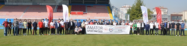 Gençlik ve Spor İl Müdürlüğü yanındaki Atatürk Yan Açık Saha'da düzenlenen etkinliğe, Gençlik ve Spor İl Müdürü Ali İhsan Kabakcı, Kayseri Amatör Spor Kulüpleri Federasyon Başkanı Musa Soykarcı şube müdürleri, antrenörler ve sporcular katıldı. Törende konuşan Kayseri Amatör Spor Kulüpleri Federasyon Başkanı Musa Soykarcı, "Dünyamızı saran koronavirüs belasından dolayı bu sezon etkinliklerin çoğunluğu sekteye uğradı. Herşeyden önce sağlık diyoruz. Sağlık tedbirlerini yerine getirdiğimiz takdirde spor karşılaşmaları başlayacaktır. İnşallah biz millet ve şehir olarak bu illetten bir an önce kurtuluruz. Çok daha güzel günlerde bir arada olmak dileği ile teşekkür ediyorum" diye konuştu.