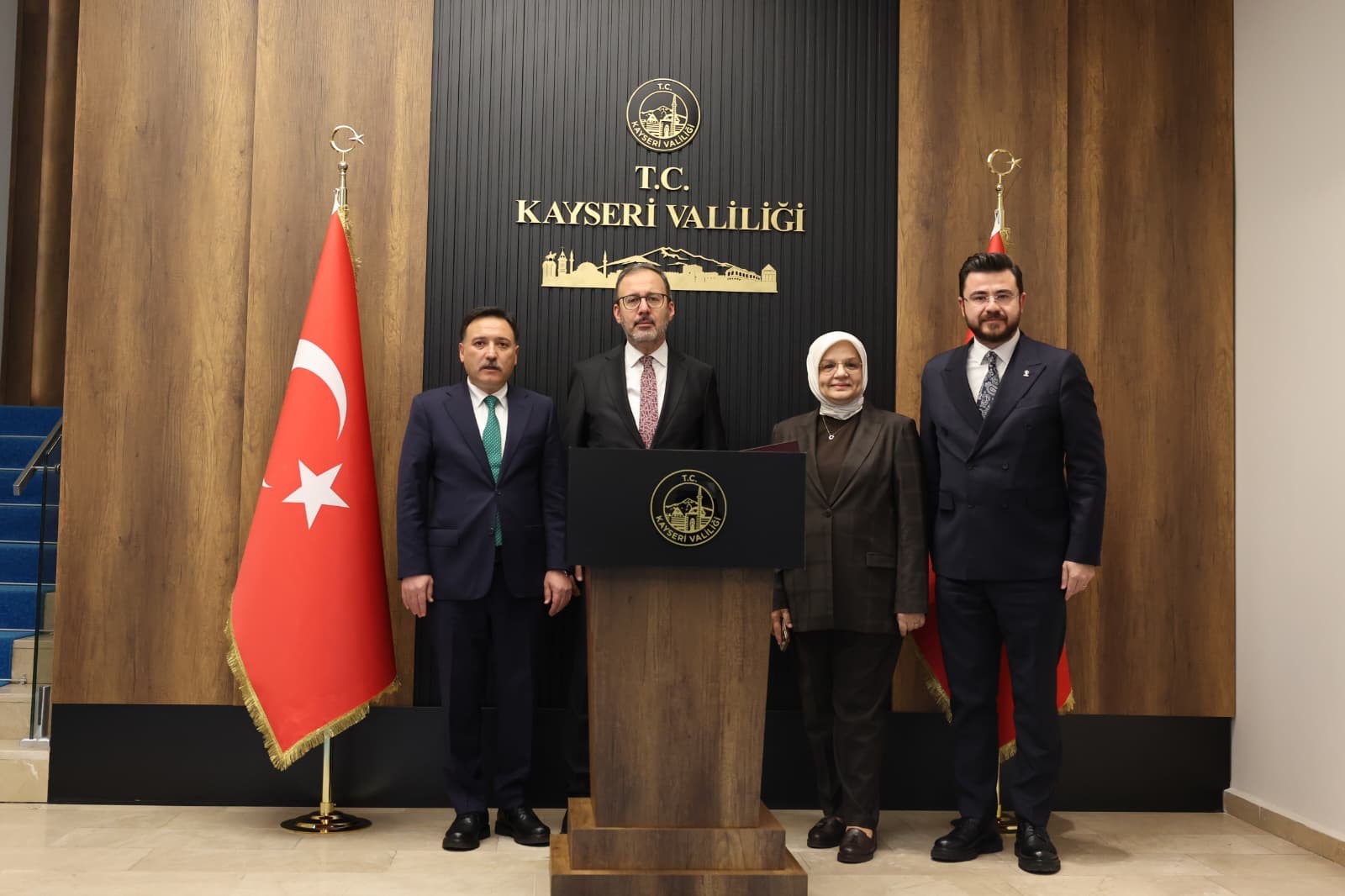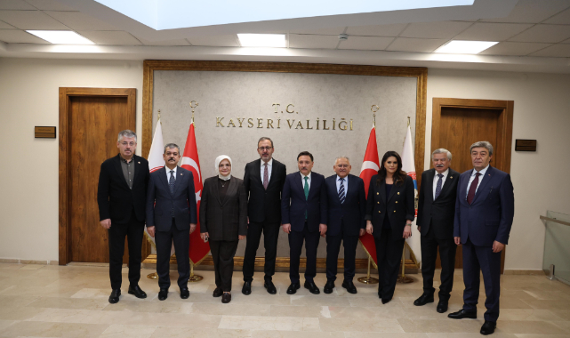 Kayseri'ye çalışma ziyareti gerçekleştiren TBMM Engelli Bireylerin Toplumsal Hayata Katılımlarının Güçlendirilmesi, Karşılaştıkları Sorunların Tespit Edilmesi ve Bu Sorunlara Kalıcı Çözümler Üretilmesi Amacıyla Kurulan Meclis Araştırması Komisyonu Başkanı ve önceki dönem Gençlik ve Spor Bakanı Mehmet Muharrem Kasapoğlu, önceki dönem Çalışma ve Sosyal Güvenlik Bakanı Sayın Jülide Sarıeroğlu ile Düzce Milletvekili Sayın Ayşe Keşir, Vali Gökmen Çiçek’i makamında ziyaret etti.