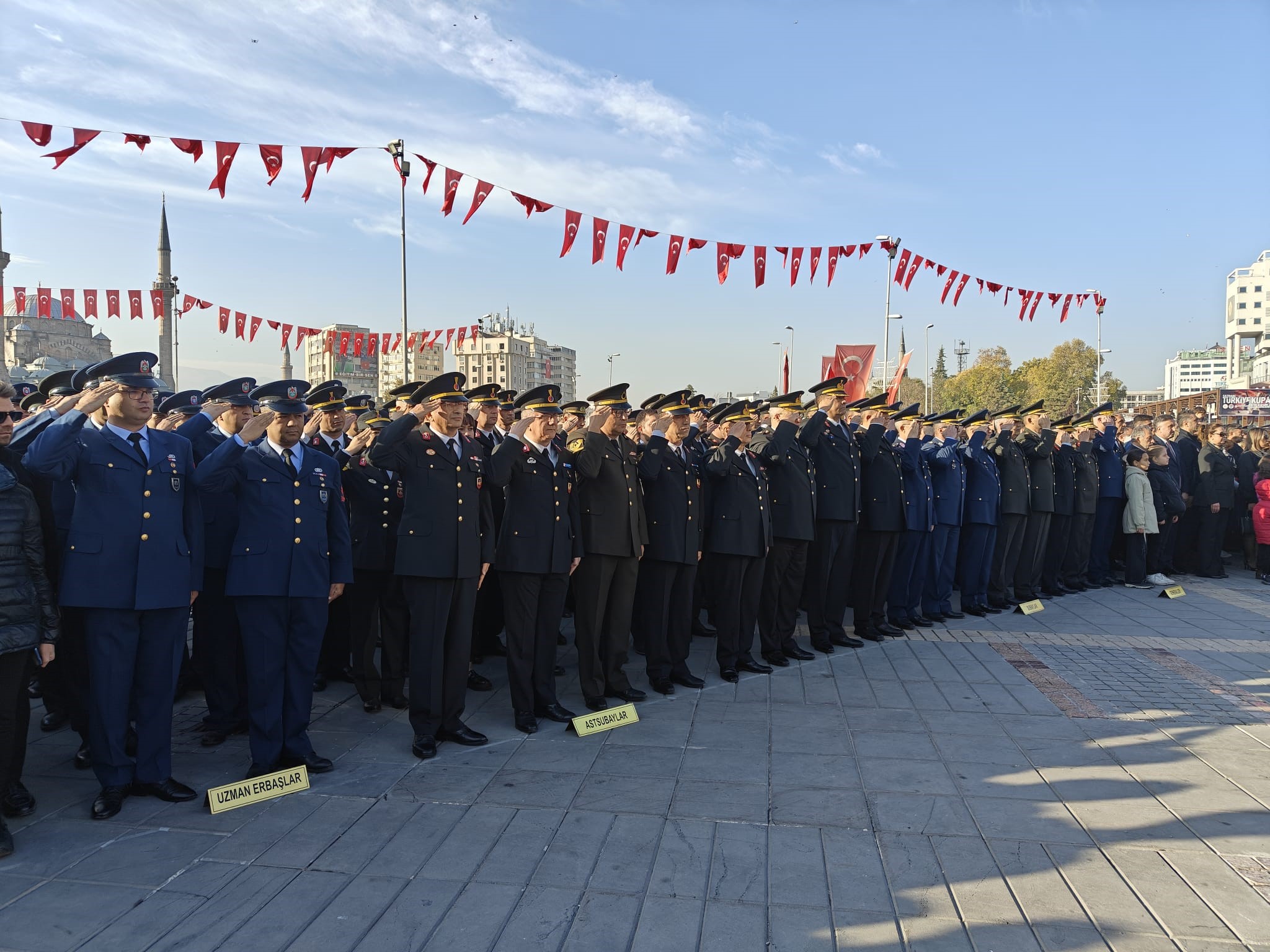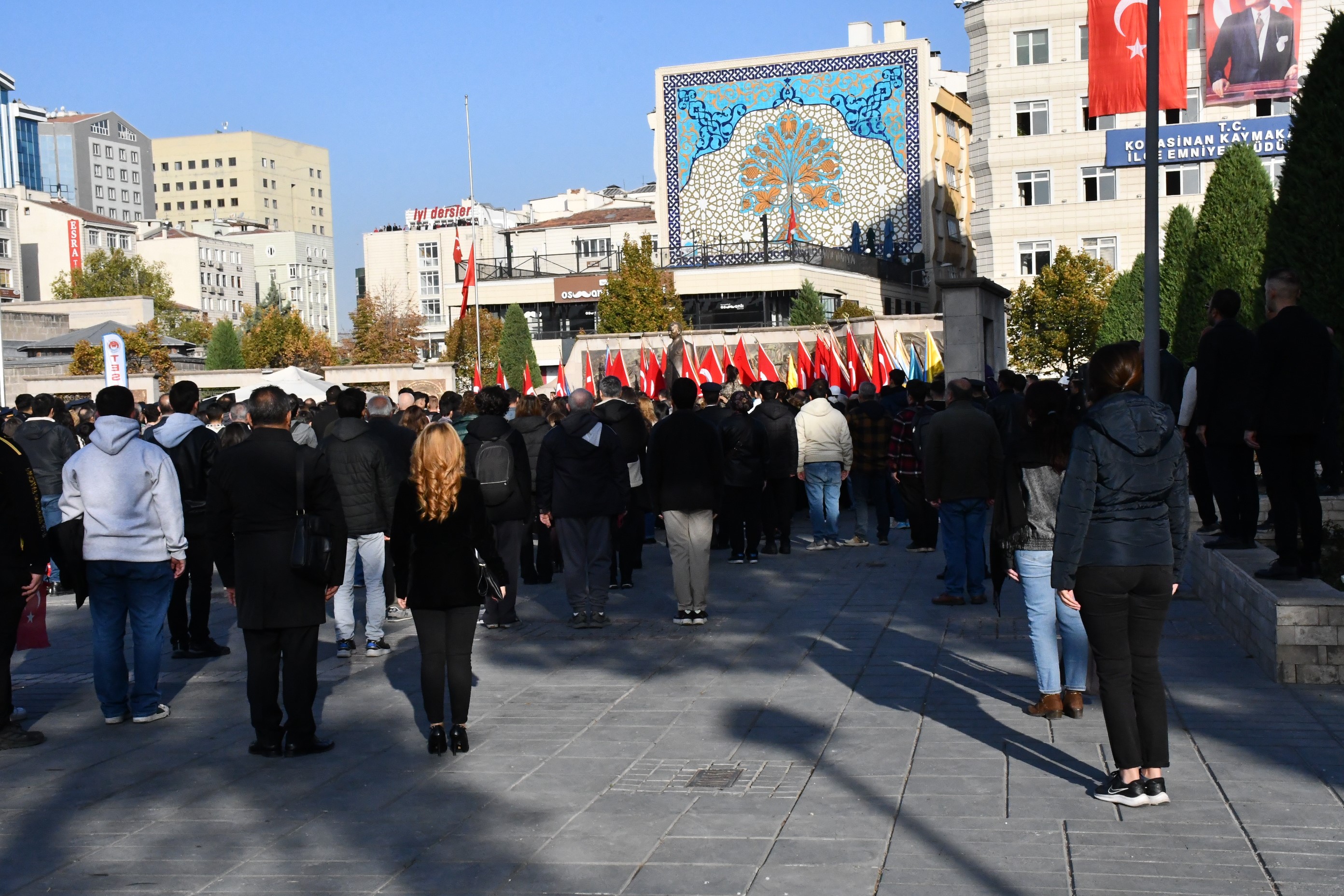 Cumhuriyet Meydanı'nda Atatürk anıtına çelenk koyulması ile başlayan anma törenine Kayseri Valisi Gökmen Çiçek, Kayseri Büyükşehir Belediye Başkanı Memduh Büyükkılıç, protokol üyeleri, sivil toplum kuruluşları, öğrenciler ve vatandaşlar katıldı. Çelenk koyma töreninin ardından siren sesleri ile başlayan 2 dakikalık saygı duruşunda tören alanındakilerle birlikte trafikteki vatandaşlar da araçlarından inerek saygı duruşuna eşlik etti. Ardından İstiklal Marşı'nın okunması ile meydanda düzenlenen tören son buldu.