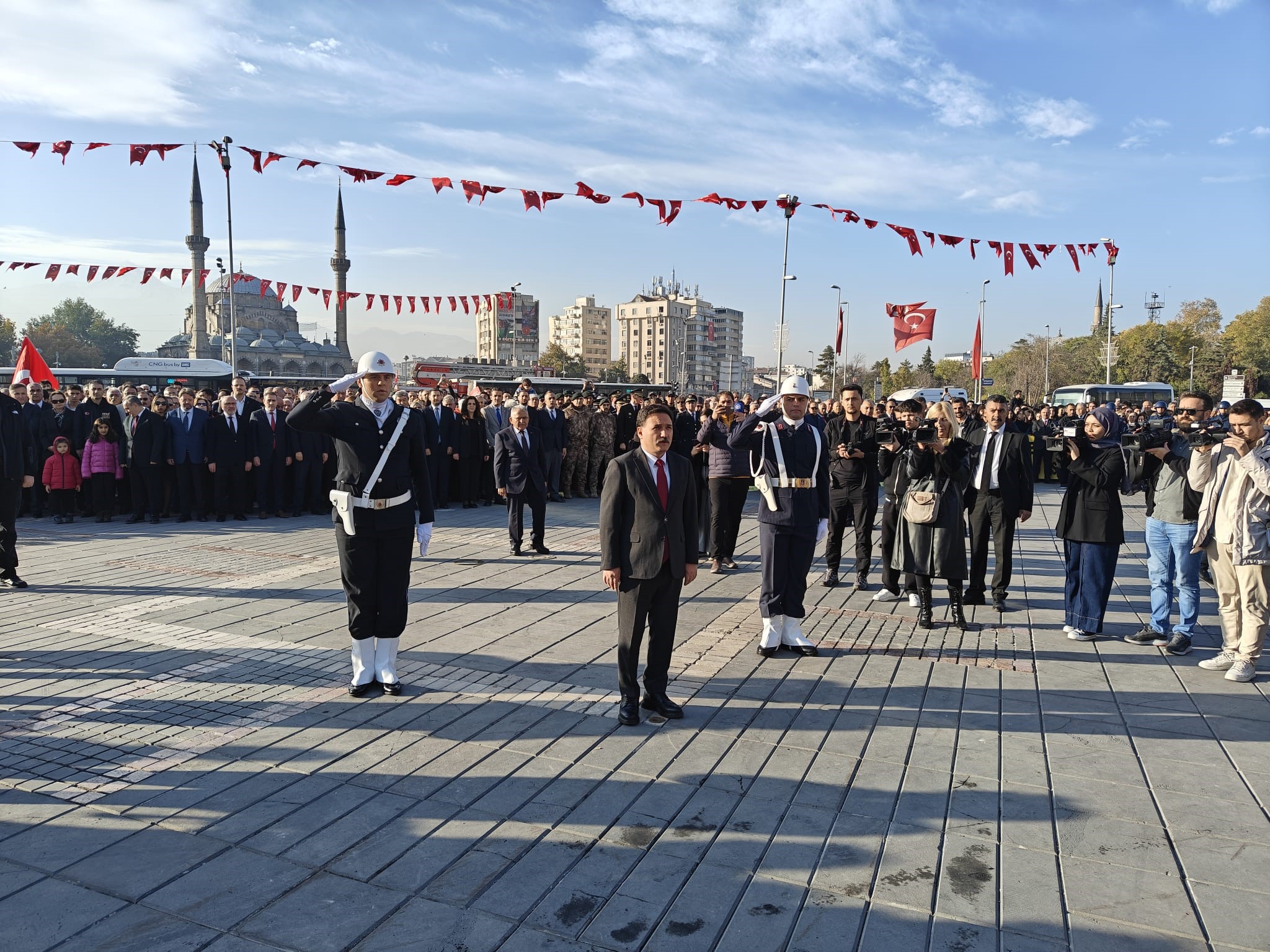 Anma töreninin ardından açıklama yapan Kayseri Valisi Gökmen Çiçek, "Bir 10 Kasım'da daha atamızı Kayseri Meydanı'ndan hüzünle anıyoruz. Bütün şehrimiz yine meydanda atamıza olan vefalarını göstermek adına. Hem Atamızı anmak hem eserlerine sahip çıkacaklarını göstermek adına gençlerimizle birlikte buradayız. Çelenkle beraber atamızı saat 09.05'de vefat ettiği saatte saygıyla andık. Bu saatten itibaren de Gazi Mustafa Kemal Atatürk'ü anmak için birçok program yapacağız. Her 10 Kasım'da hüzünlüyüz. Atatürk'ün ‘Benim naçiz bedenim bir gün toprak olacaktır ama Türkiye Cumhuriyeti ilelebet payidar kalacaktır' sözüyle bize ve ülkemize, ülkemiz için çalışmak ve onu daha yukarılara çıkarmak için gösterdiği yolda hep beraber yürüyeceğimizin mesajını da burada vermiş olduk" dedi.