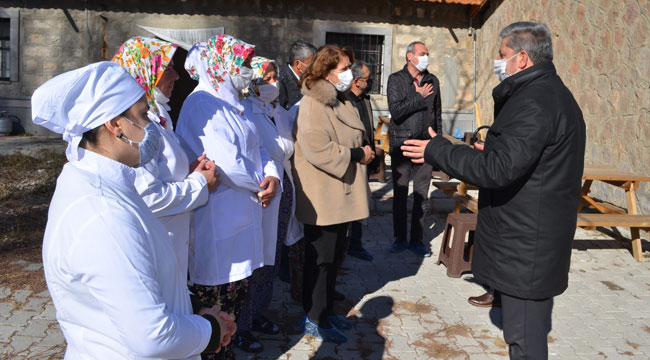 Başkan Özkan Altun, "Karahıdır mahallemizde bulunan 'Kadın Çiftçiler Ekolojik Eğitim Ve Üretim Merkezi' (KAÇEM)'de kadın girişimcilerimiz ile bir araya geldik. Açık Ceza İnfaz Kurumu Müdürü Özer Duman, Kapadokya Organik Tarım Üreticileri Birliği Derneği Başkanı Yeşim Bekyürek, mahalle muhtarımız ve üretici kadınlarımız ile üretim merkezine dönüşen köy okulunda, kadın çiftçilerimizin tarladan çıkardıkları sertifikalı, organik alın teri ürünlerini işledikleri bu merkezde birlikte yürütülebilecek çalışmalar üzerine değerlendirmelerde bulunduk. Kurdukları kooperatif ile salça, erişte, tarhana ve reçel gibi ürünlerin sofralarımızda katkısız ve doğal haliyle tüketimini sağlayan kadınlarımızı bir kez daha kutluyorum. Bizler, şimdiye kadar olduğu gibi kendilerine destek olmak adına elimizden geleni yapmaya devam edeceğiz" dedi.
