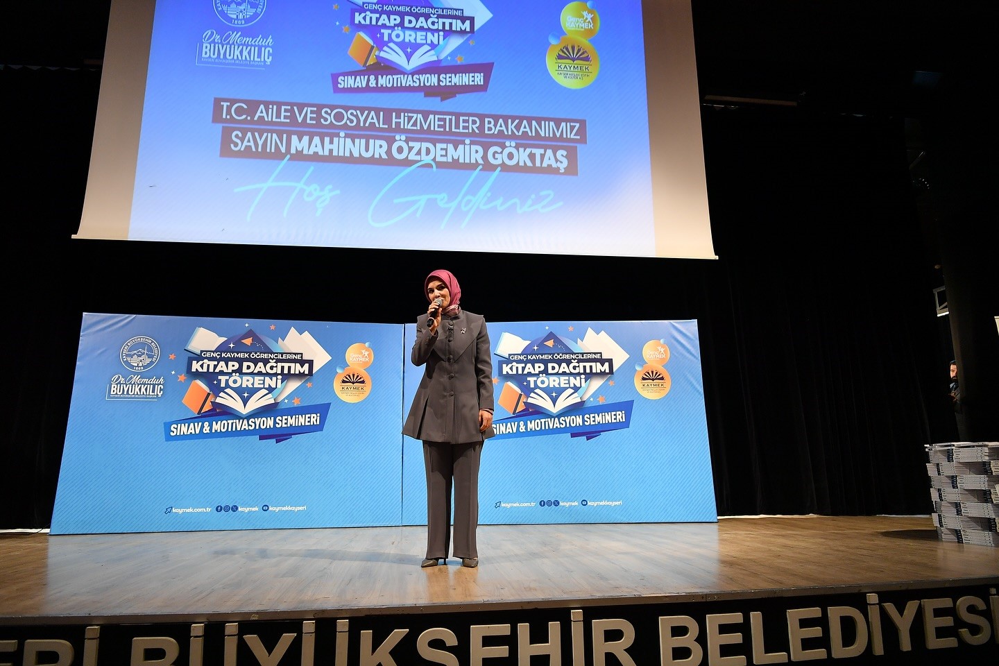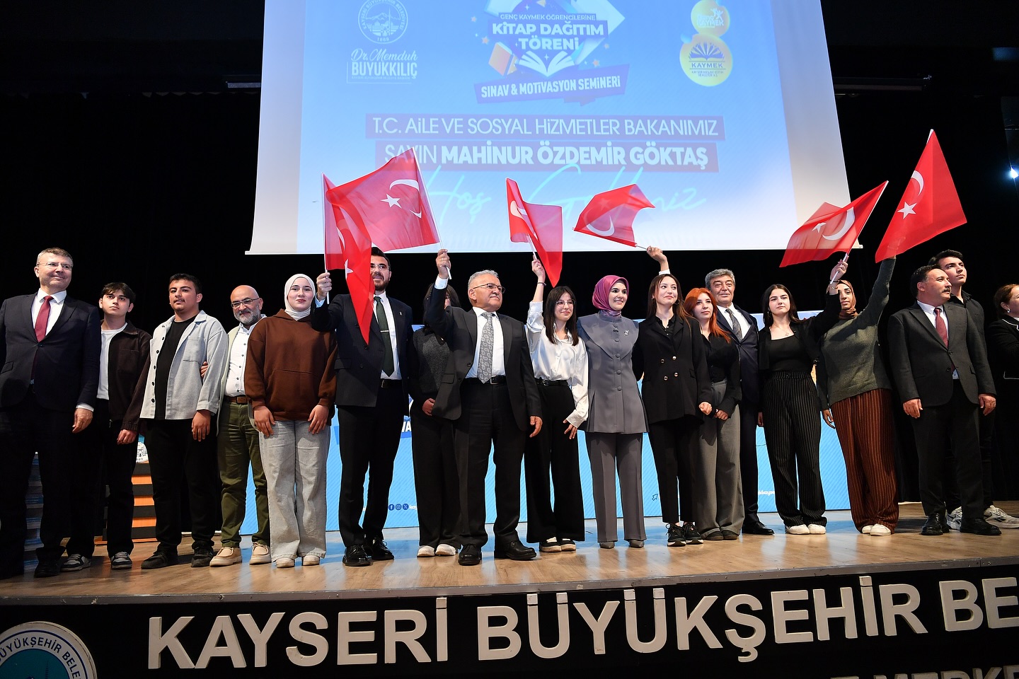 Kayseri Büyükşehir Belediye Başkanı Dr. Memduh Büyükkılıç, Aile ve Sosyal Hizmetler Bakanı Mahinur Özdemir Göktaş ile birlikte KAYMEK tarafından LGS ve YKS’ye hazırlanan öğrencilere yönelik destek amacıyla düzenlenen Kitap Dağıtım Töreni ve Sınav Motivasyon Semineri’nde öğrencilere kaynak hazırlık kitabı dağıtımı gerçekleştirdi. Öğrencilere ücretsiz şekilde kaynak kitap desteğinde bulunan öğrenci dostu Başkan Büyükkılıç, "Gençler, iyi ki varsınız. Alnınızdan öpüyorum, başarılar diliyorum" dedi.