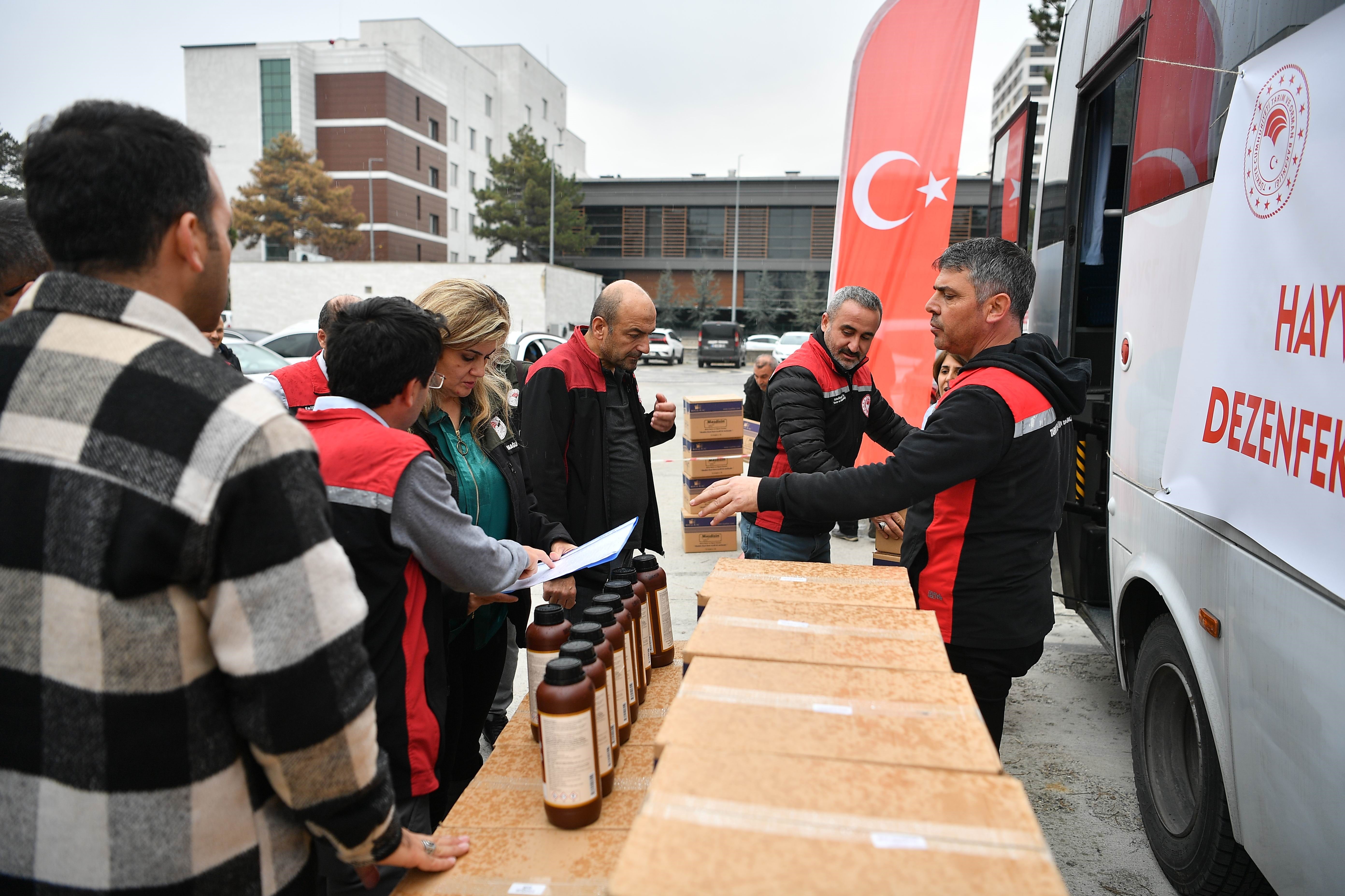 Veterinerlik Hizmetleri Daire Başkanı Duran Safrantı ise Başkan Büyükkılıç’ın talimatları doğrultusunda temin ettikleri dezenfektan ilaçlarının, İl Tarım ve Orman Müdürlüğü aracılığı ile ilçe müdürlüklerine teslimi için bir arada olduklarına işaret ederek, "Ülkemizde meydana gelen hayvan hastalıkları, doğal olarak şehrimizde de görüldü. Tarım il müdürlüğümüz gerekli mücadeleleri yaptı. Şu anda hastalık sönme aşamasına geldi, hiç kalmadı ama bu dezenfektanlarla üreticilerimizin ahırlarını, hayvanlarını dezenfekte etmeleri gerekiyor" dedi. Tarımın her alanında olduğu gibi hayvan hastalıkları konusunda da Başkan Büyükkılıç’ın talimatları ile Büyükşehir Belediyesi’nin üreticilerin yanlarında olduğunu vurgulayan Safrantı, çiftçilere hastalıksız, bereketli günler temennisinde bulundu.