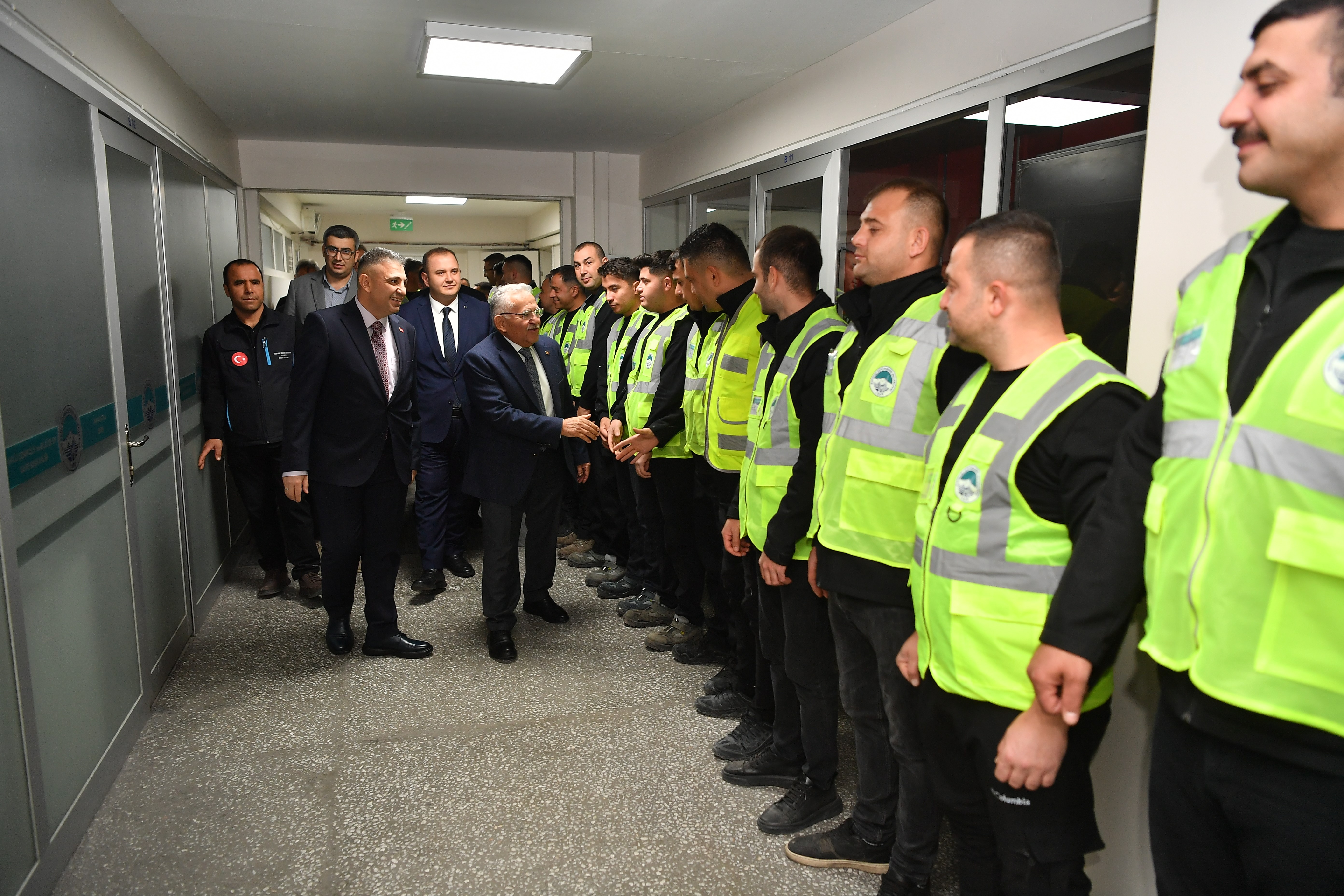Kayseri Büyükşehir Belediye Başkanı Dr. Memduh Büyükkılıç, Büyükşehir Belediyesi İşletme ve İştirakler Daire Başkanlığı bünyesindeki teknik bakım ve onarım personeli ile buluşarak, kentte gerçekleştirilen hizmetlerin istişaresini yaptı.