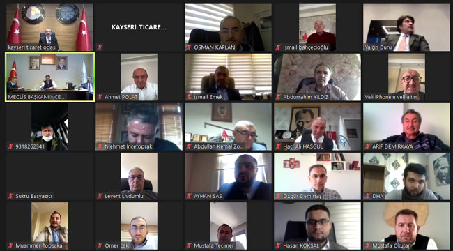 Meclis Başkanı Cengiz Hakan Arslan’ın başkanlığında video konferansla yapılan toplantıya; konuk olarak Kayseri Vergi Dairesi Başkanı Şahin Demirci ile SGK Kayseri Sosyal Güvenlik İl Müdürü Hacı Ali Hasgül’ün yanı sıra Başkan Ömer Gülsoy, Yönetim Kurulu üyeleri, Meslek Komitesi ve Meclis Üyeleri, Kadın Girişimciler Kurulu, İcra Kurulu Üyeleri, Yüksek İstişare Kurulu Üyeleri, Meclis Başkanlık Divan üyeleri ve Basın mensupları katıldı.