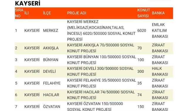 AK Parti Kayseri İl Başkanı Hüseyin Okandan; Kayseri'ye yapılacak olan 7 bin 562 sosyal konutun ilçelere göre kontenjanlarını açıkladı.