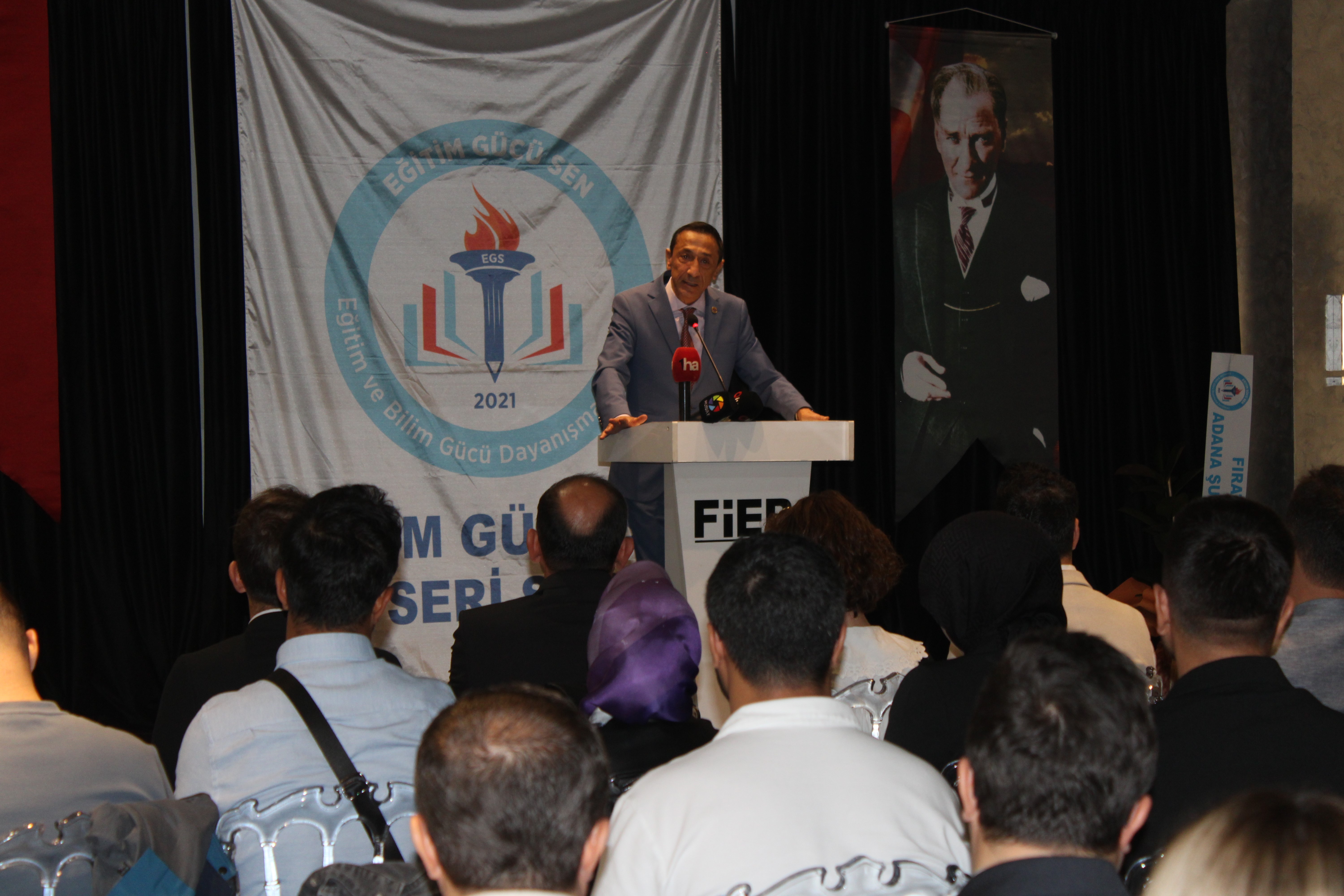 Sendika Genel Başkanı Oğuz Özat ise konuşmada sendikanın kuruluşunun üzerinden geçen 4 yılın ardından ulaşılan 18 bin üye sayısının, eğitim çalışanlarının sendikaya duyduğu güvenin en somut göstergesi olduğunu ifade etti. Eğitim Gücü Sen’in hiçbir siyasi yapının arka bahçesi olmadığını vurgulayan Özat; sendikanın temel amacının eğitim çalışanlarının haklarını savunmak olduğunu belirtti. "Siyaseti kesinlikle reddediyoruz. Bizim tek gündemimiz eğitim çalışanlarının haklarını savunmak, onların sesi olmak ve bu mücadeleyi en ön safta yürütmektir" diyen Özat; teşkilatın Türkiye genelinde büyümeye devam edeceğini ve yarınlara yetkili sendika olarak girmeyi hedeflediklerini dile getirdi. Konuşmasında sendikanın ilkeleri ve duruşuna da dikkat çeken Özat; "Bizler, çıkar ilişkilerine dayalı sendikacılığı reddediyoruz. Eğitim Gücü Sen, hiçbir siyasi partinin gölgesinde hareket etmeyen, yalnızca eğitim çalışanlarının haklarını önceleyen bir sendikadır. Bu duruşumuz, bize olan güveni her geçen gün artırıyor. Bugün 18 bin üyeye ulaşmışsak, bu duruşumuz sayesindedir" ifadelerini kullandı. Genel Başkan Özat; sahadaki etkinliğine de değinerek, "Biz sadece masa başında değil, sahada, okullarda, öğretmen odalarında varız. Üyelerimizin sorunlarını dinliyor, çözüm yolları üretiyoruz. Eğitim çalışanlarının sesi olmak için gece gündüz demeden çalışıyoruz. Bu sendika, üyelerinin sendikasıdır. Her bir üyemiz, bu yapının temel taşıdır" dedi.