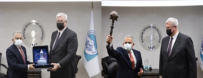 Büyükşehir Belediye Başkanı Dr. Memduh Büyükkılıç, Ukrayna Ankara Büyükelçisi Andrii Sybiha’yı başkanlık girişinde karşıladı. Ziyarette, Konsolos Andrii Bilyk, Ataşe Anna Shmyk, Büyükelçinin asistanı Valentyna Khorunzha, Ukraynalı gazeteci Olga Budnyk, İl Kültür ve Turizm Müdürü Dr. Şükrü Dursun ile Kayseri Erciyes AŞ Yönetim Kurulu Başkanı Murat Cahid Cıngı da hazır bulundu.