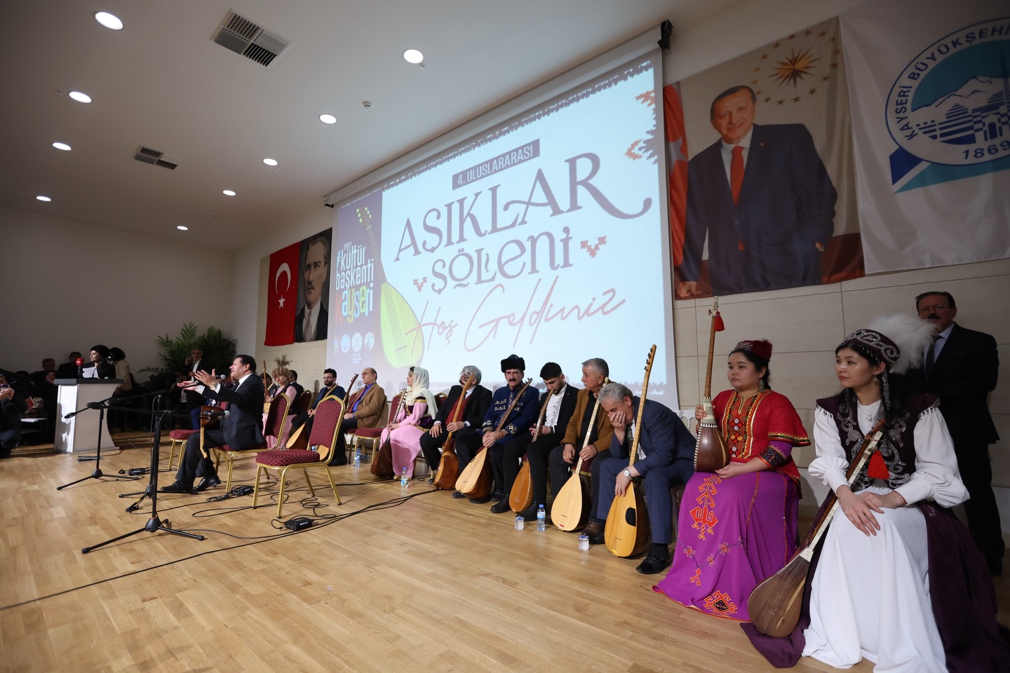 Kayseri Valiliği ve Kayseri Büyükşehir Belediyesi’nin iş birliği ile düzenlenen 4. Uluslararası Âşıklar Şöleni, Erciyes Kültür Merkezi’nde yoğun ilgi ile gerçekleşti. Saygı duruşu ve İstiklal Marşı’nın okunması ile başlayan şölene, Büyükşehir Belediye Başkanı Dr. Memduh Büyükkılıç’ın yanı sıra Vali Gökmen Çiçek ile AK Parti MKYK Üyesi ve AK Parti Kayseri Milletvekili Dursun Ataş, İl Kültür ve Turizm Müdürü Şükrü Dursun, Kayseri’den, yurt içinden ve yurt dışından âşıklar ve çok sayıda vatandaş katıldı.
