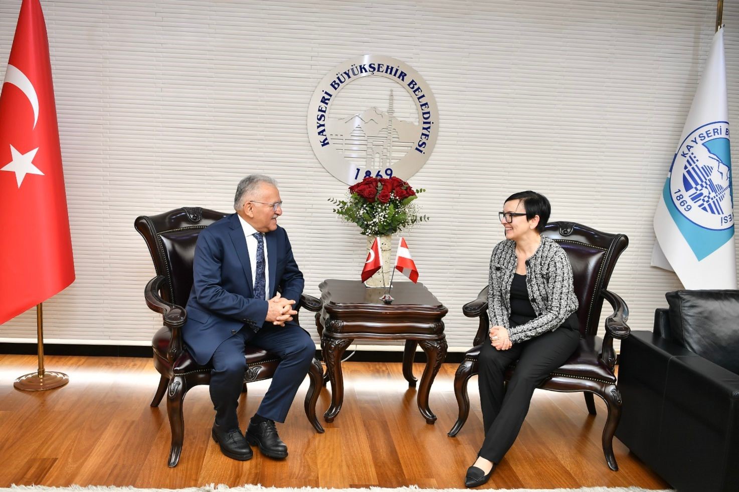 Kayseri Büyükşehir Belediye Başkanı Dr. Memduh Büyükkılıç, Avusturya Ankara Büyükelçisi Gabriele Juen’i makamında misafir etti. Başkan Büyükkılıç, "Bu güzel şehrimizde sizleri görmek, şehrimizin tanıtımına vesile olmanız, hem de bu güzel ortamda tekrar şehrimizi, bizleri tanımanız bizler için anlamlı ve önemli" dedi.