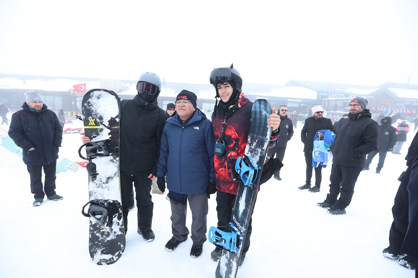 Başkan Büyükkılıç, hem yerli hem de yabancı misafirlerle hatıra fotoğrafı çektirerek, tüm kayak ve snowboard tutkunlarını Erciyes Kayak Merkezi’nin büyüleyici atmosferini yaşamaya davet etti.