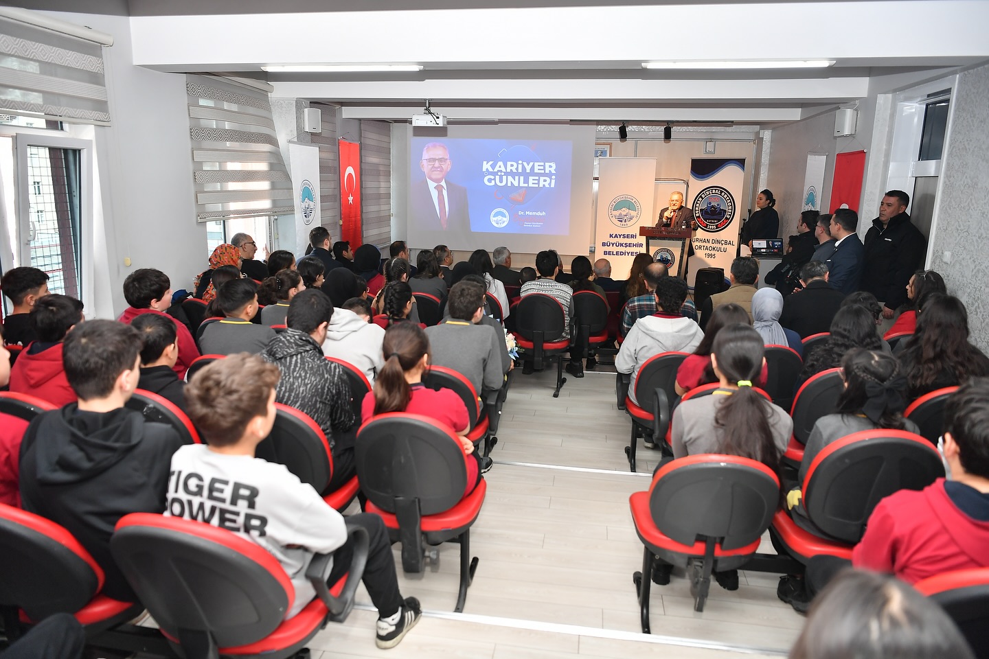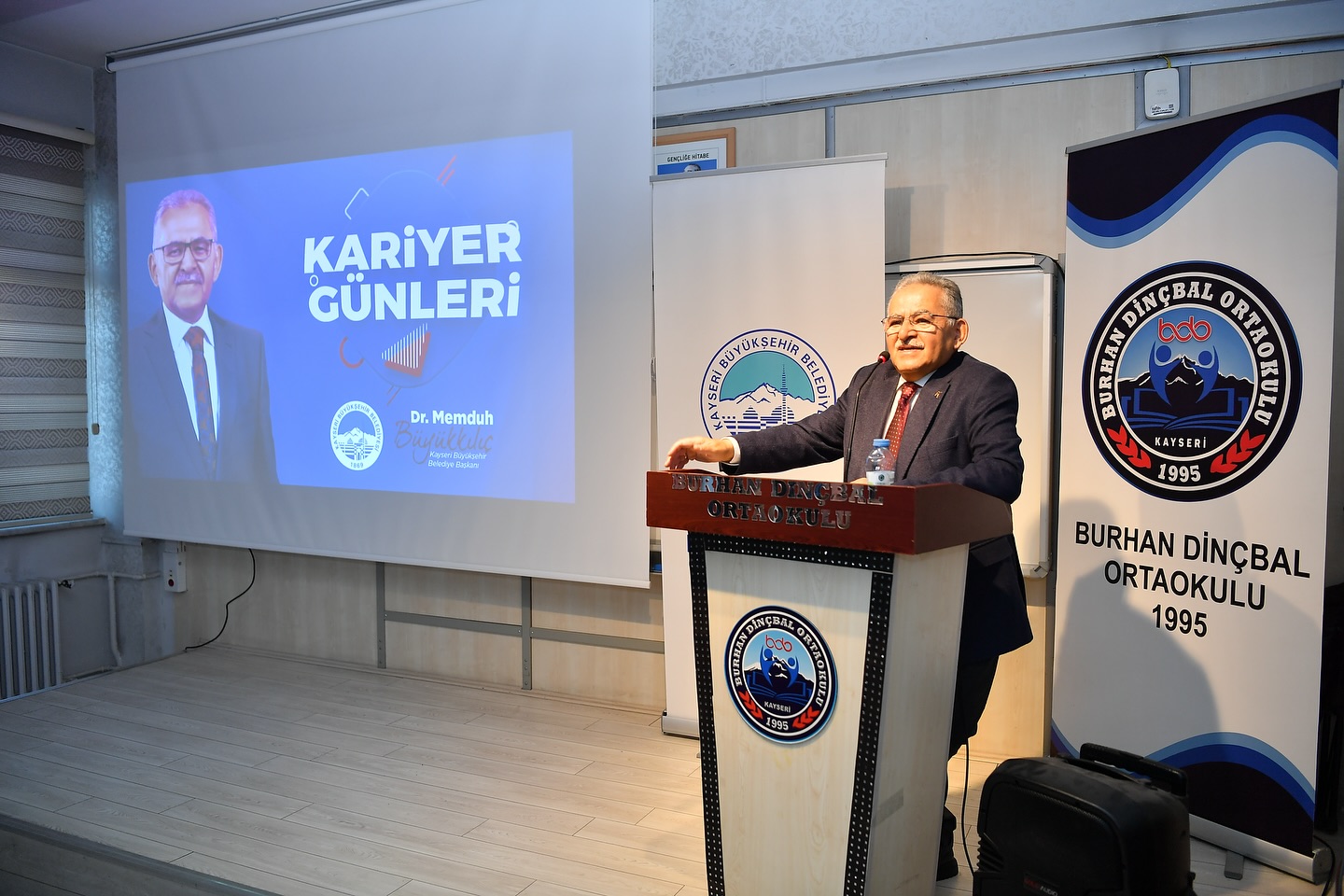 Kayseri Büyükşehir Belediye Başkanı Dr. Memduh Büyükkılıç, Kariyer Günleri programı kapsamında Burhan Dinçbal Ortaokulu’nu ziyaret ederek öğretmen ve öğrencilerle bir araya geldi. Başkan Büyükkılıç, gençlerle hem kariyer hem de hayat tecrübelerini paylaşarak genç dostu Büyükşehir Belediyesi olarak daima gençlerin yanın olduklarını kaydetti.