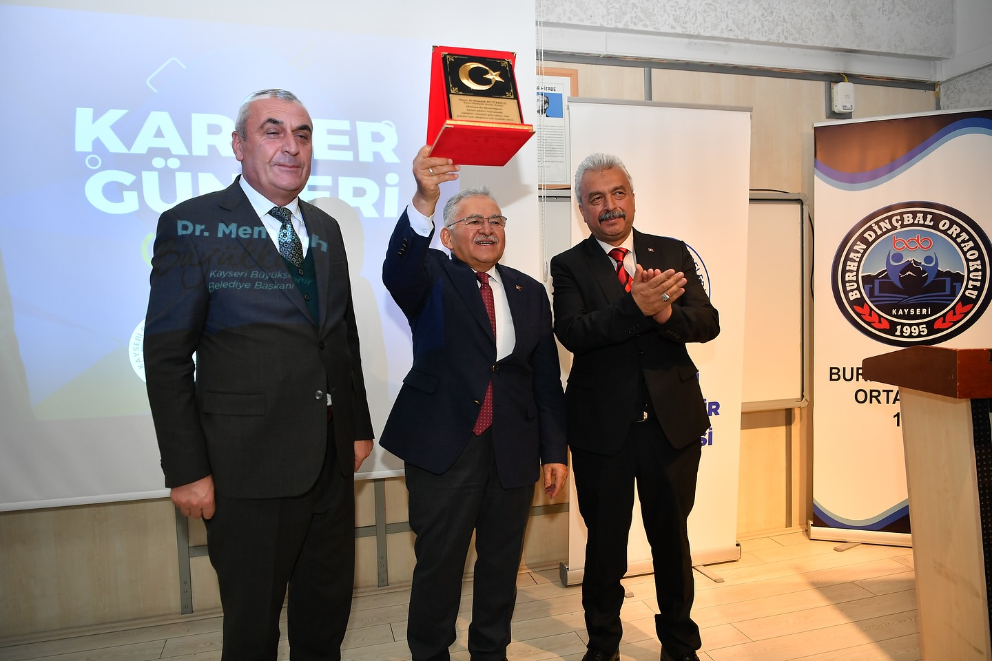 Program sonunda Melikgazi İlçe Milli Eğitim Müdürü Hacı Kaya tarafından Başkan Büyükkılıç’a, plaket takdiminde bulunulurken, Kariyer Günleri programı, günün anısına çekilen hatıra fotoğrafı ile sona erdi.