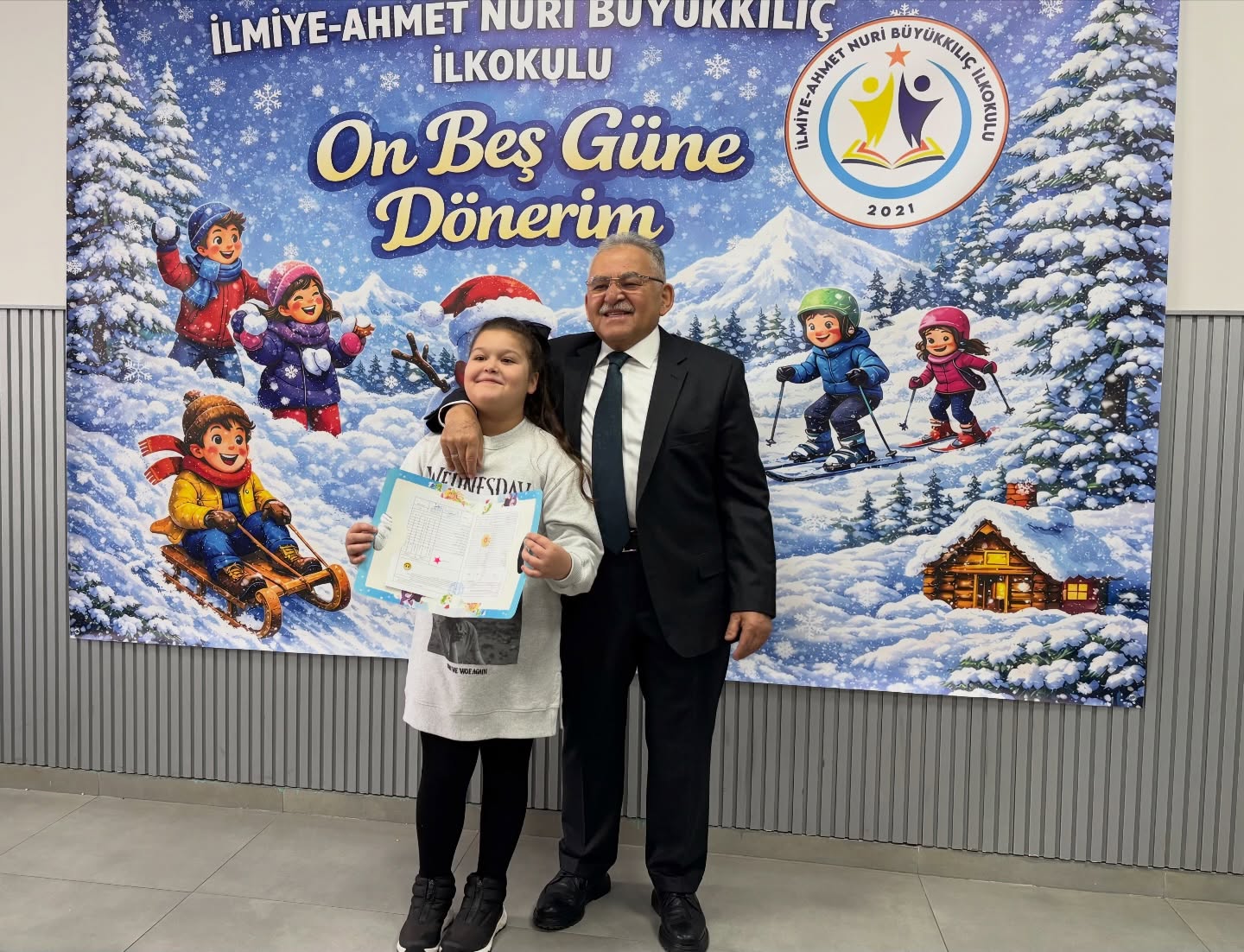 Kayseri Valisi Gökmen Çiçek ile Büyükşehir Belediye Başkanı Dr. Memduh Büyükkılıç, 2025-2026 eğitim öğretim yılının ilk dönemini tamamlayan öğrencilerin karne sevincine ortak oldu. Öğrencilere karnelerini veren Çiçek ve Büyükkılıç, başarılarından dolayı onları tebrik ederek iyi tatiller diledi.