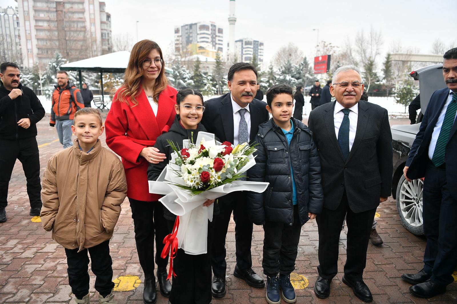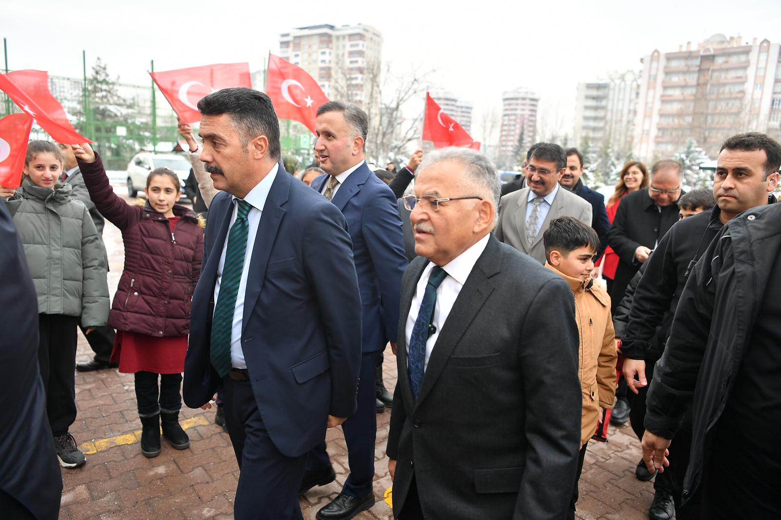 2025-2026 Eğitim Öğretim Yılı I. Dönem Karne Dağıtım Programı'na, Kayseri Valisi Gökmen Çiçek, Büyükşehir Belediye Başkanı Dr. Memduh Büyükkılıç, Kocasinan Belediye Başkanı Ahmet Çolakbayrakdar, Kayseri İl Milli Eğitim Müdürü Coşkun Esen’in yanı sıra öğretmenler, öğrenciler ve veliler katıldı. Öğrenciler, protokol üyelerini ellerinde Türk bayraklarıyla coşkulu bir şekilde karşıladı.