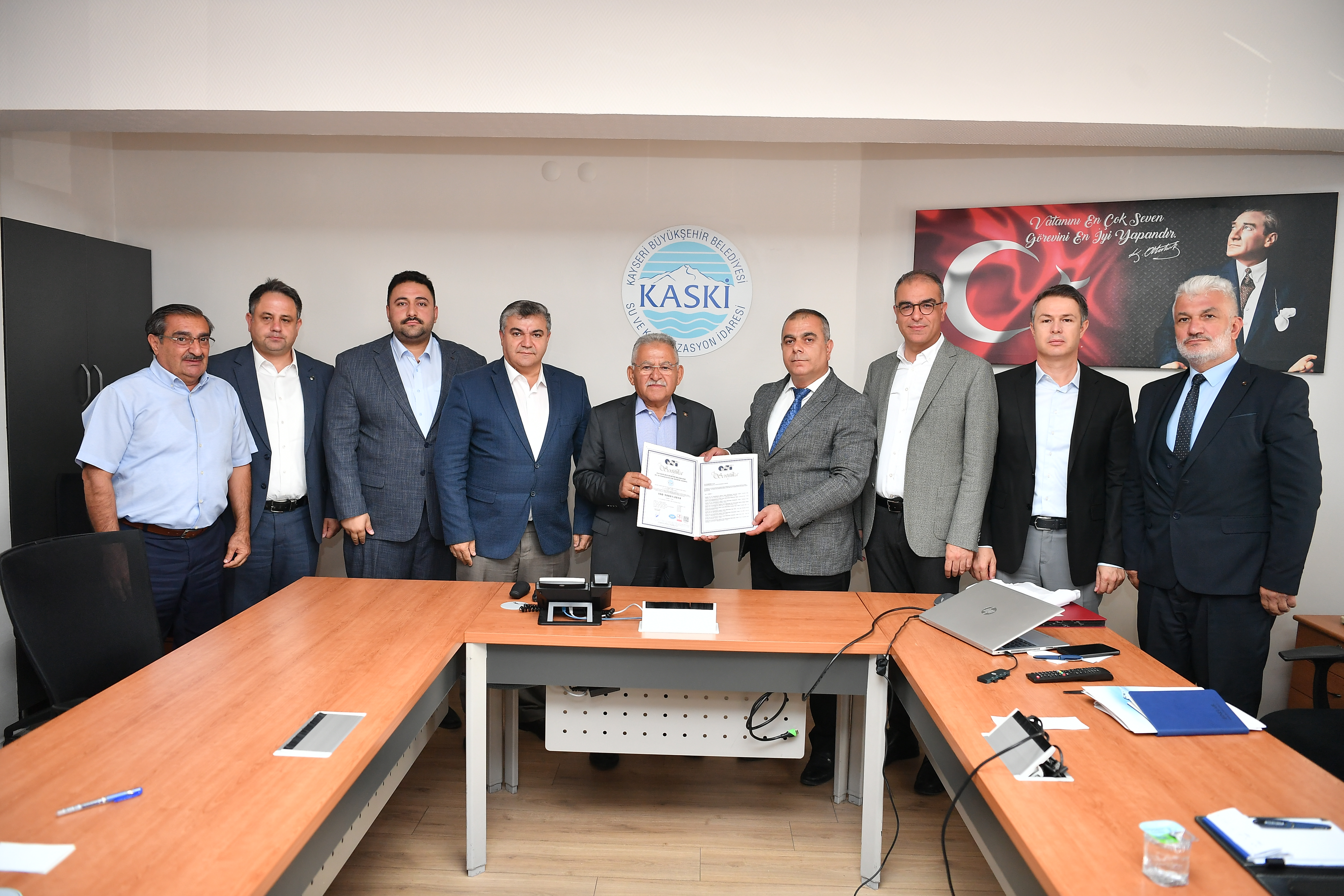 Öte yandan, KASKİ, ISO 50001:2018 Enerji Yönetim Sistemi standartlarına uygun olarak yapılandırılırken, Enerji Yönetim Sistemi belgesi almaya hak kazandı. Toplantı sonunda QSI Belgelendirme firması tarafından KASKİ’ye verilen ISO 50001:2018 Enerji Yönetim Sistemi Sertifikası hakkında Büyükşehir Belediye Başkanı Dr. Memduh Büyükkılıç’a bilgi verilerek, günün anısına hatıra fotoğrafı çektirildi.