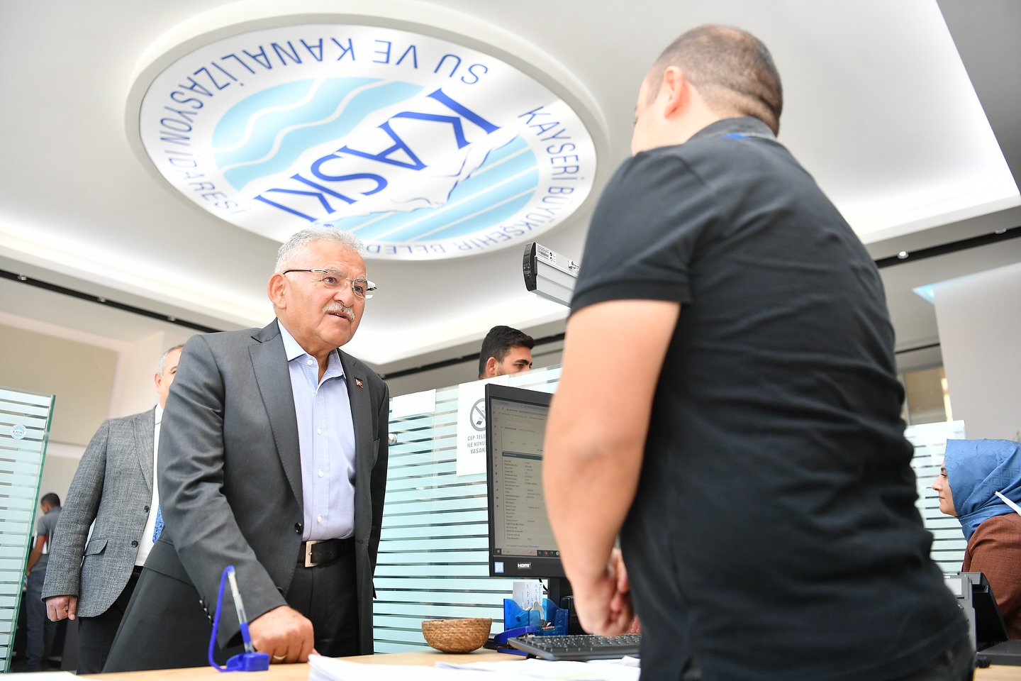 Büyükşehir Belediye Başkanı Dr. Memduh Büyükkılıç, şehrin en büyük yatırımcı kuruluşlarından biri olan Kayseri Su ve Kanalizasyon İdaresi (KASKİ) Genel Müdürlüğü’nü ziyaret ederek, görev yapan personelle buluştu. Ziyaret kapsamında abone servisi çalışanlarına kolaylıklar dileyen Büyükkılıç, işlem yapan vatandaşlarla da sohbet etti, talep ve önerilerini sordu.
