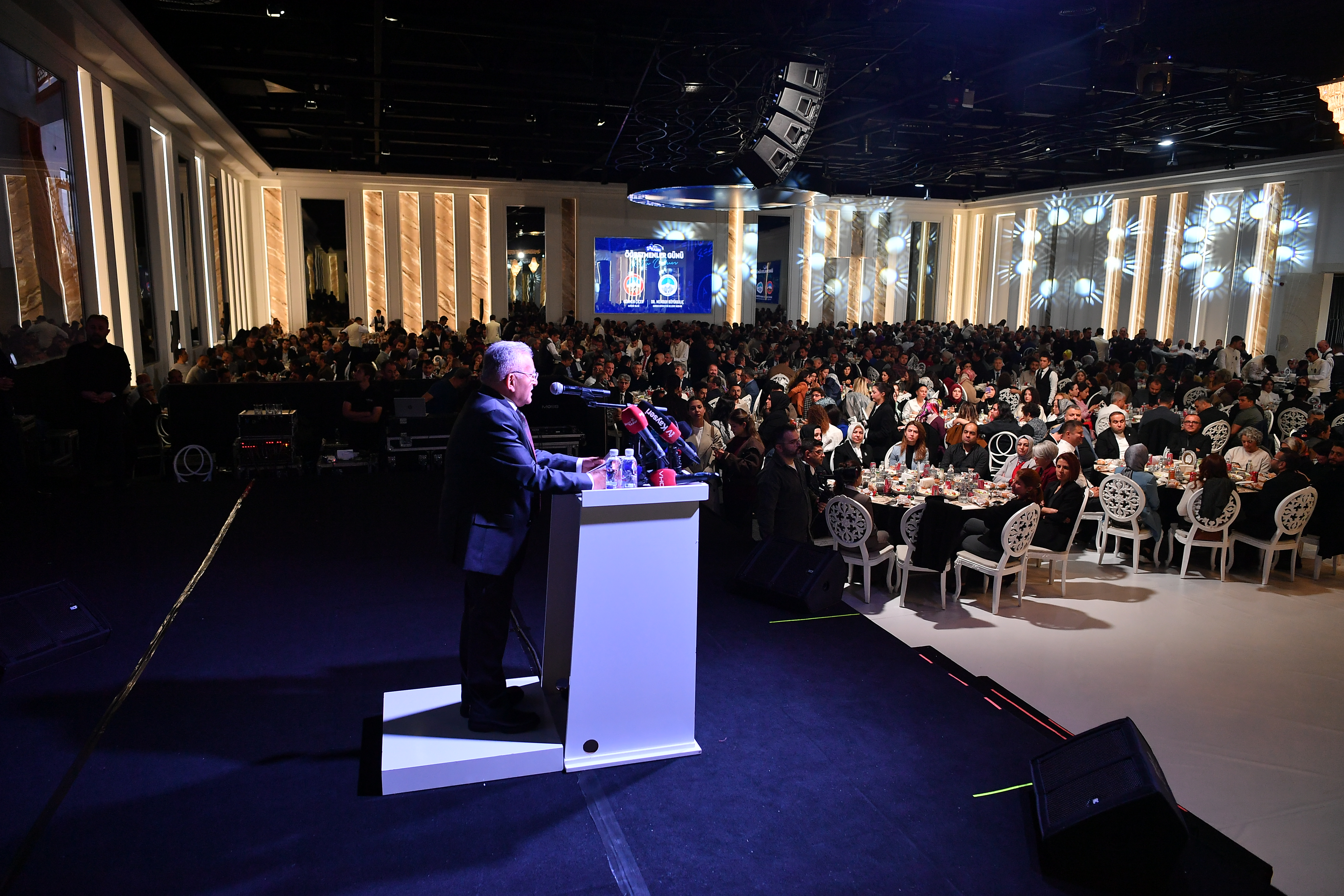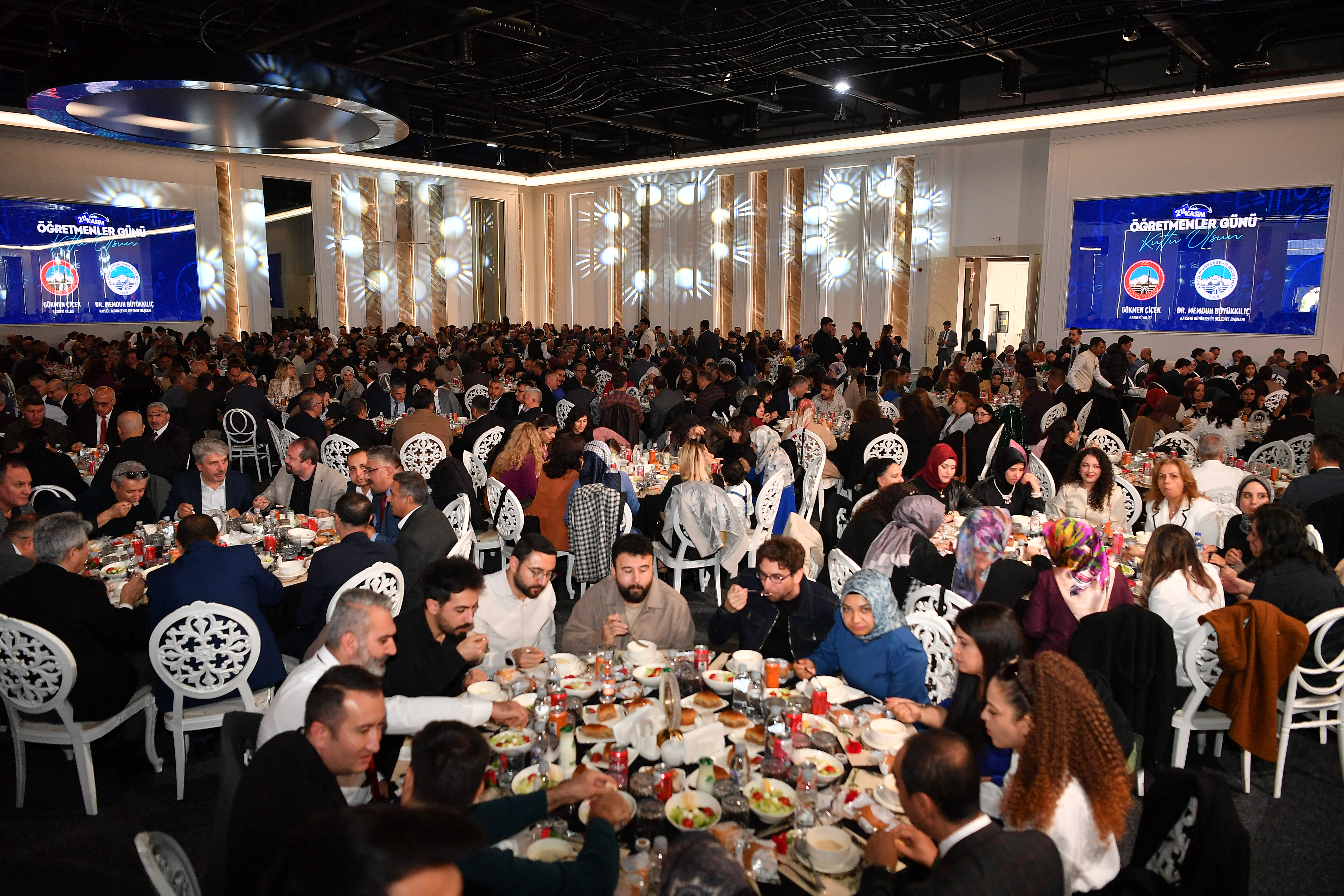 Başkan Büyükkılıç, salona girişinde masaları tek tek dolaşarak öğretmenlerle samimi sohbetler gerçekleştirirdi.