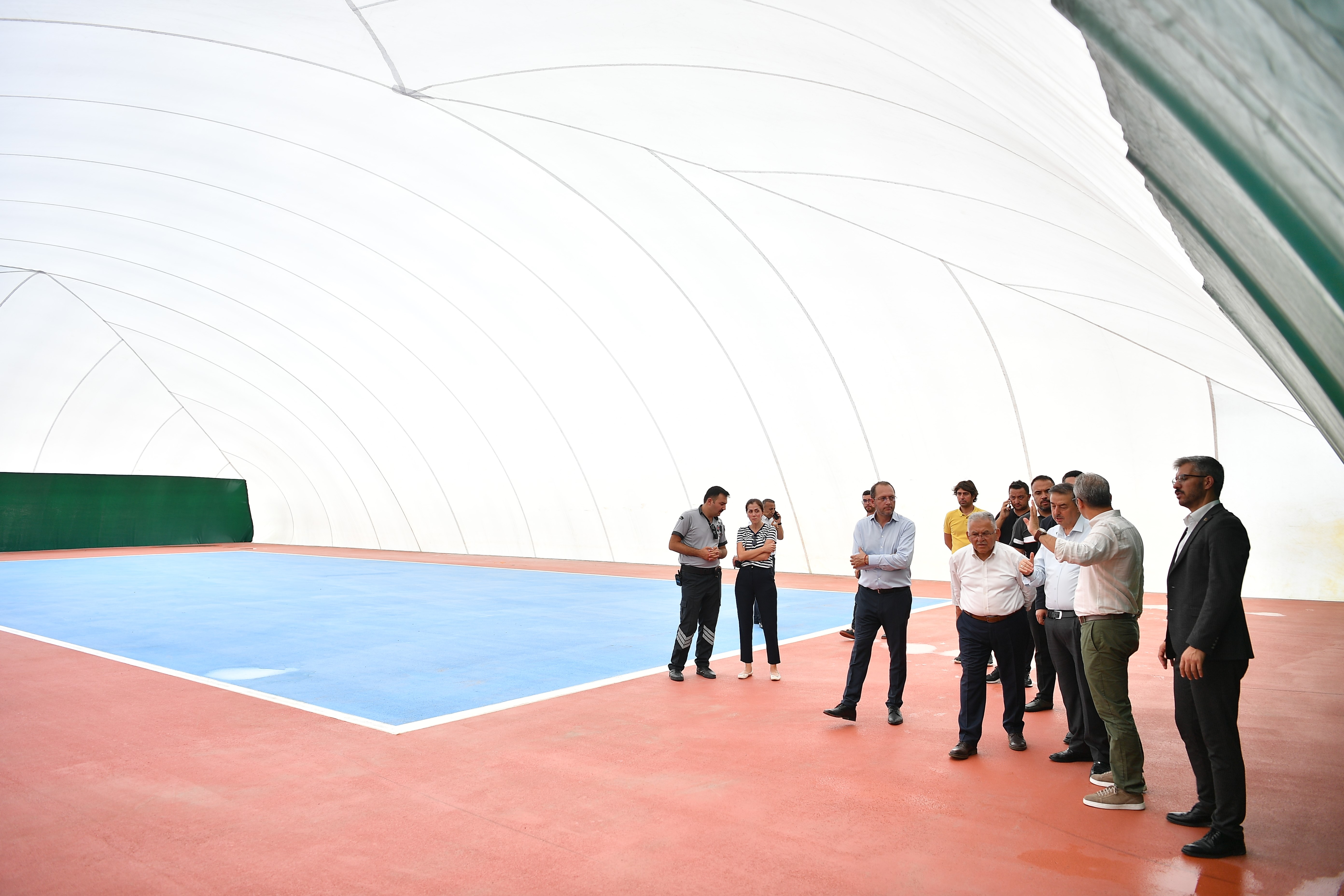 Bu kapsamda beklentiler doğrultusunda Recep Tayyip Erdoğan Millet Bahçesi içerisindeki 2 tenis kortunun yağışlı havalarda da spor yapmaya imkân tanıyacak şekilde üzerinin kapatılma çalışmalarını inceleyen Büyükşehir Belediye Başkanı Dr. Memduh Büyükkılıç, spora yönelik faaliyetleri sürdürdüklerini paylaştı.