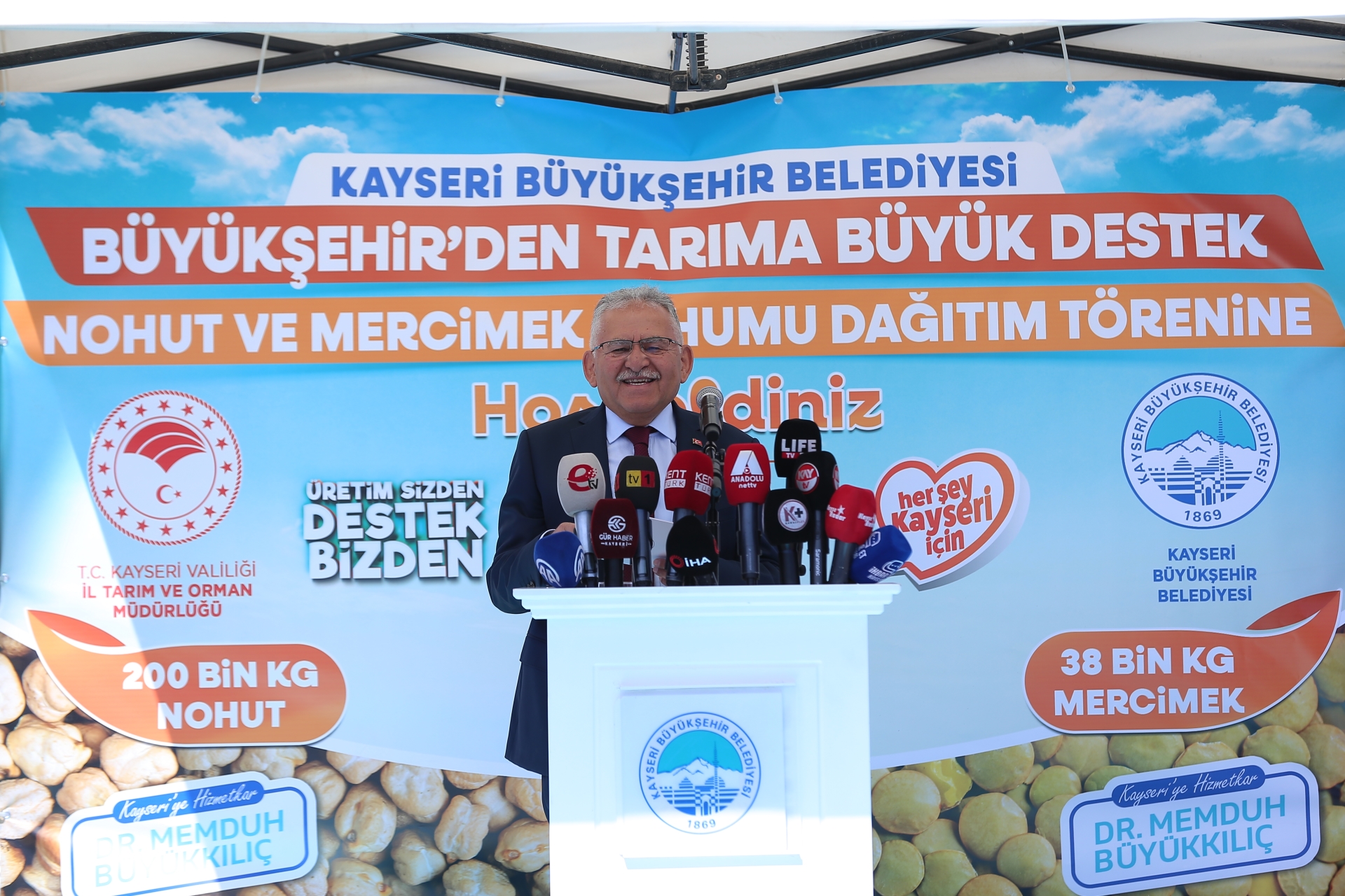 Kayseri Büyükşehir Belediyesi; kentin tarımsal üretim yapan çiftçilerini desteklemek ve Kayseri’nin ülke tarımındaki üretim katkısını arttırmak amacıyla 2025 yılında 12 milyon 526 bin TL maliyetli toplamda 262 ton nohut, yeşil mercimek ve buğday tohumu ile 3 bin fidan dağıtımı yaptı.