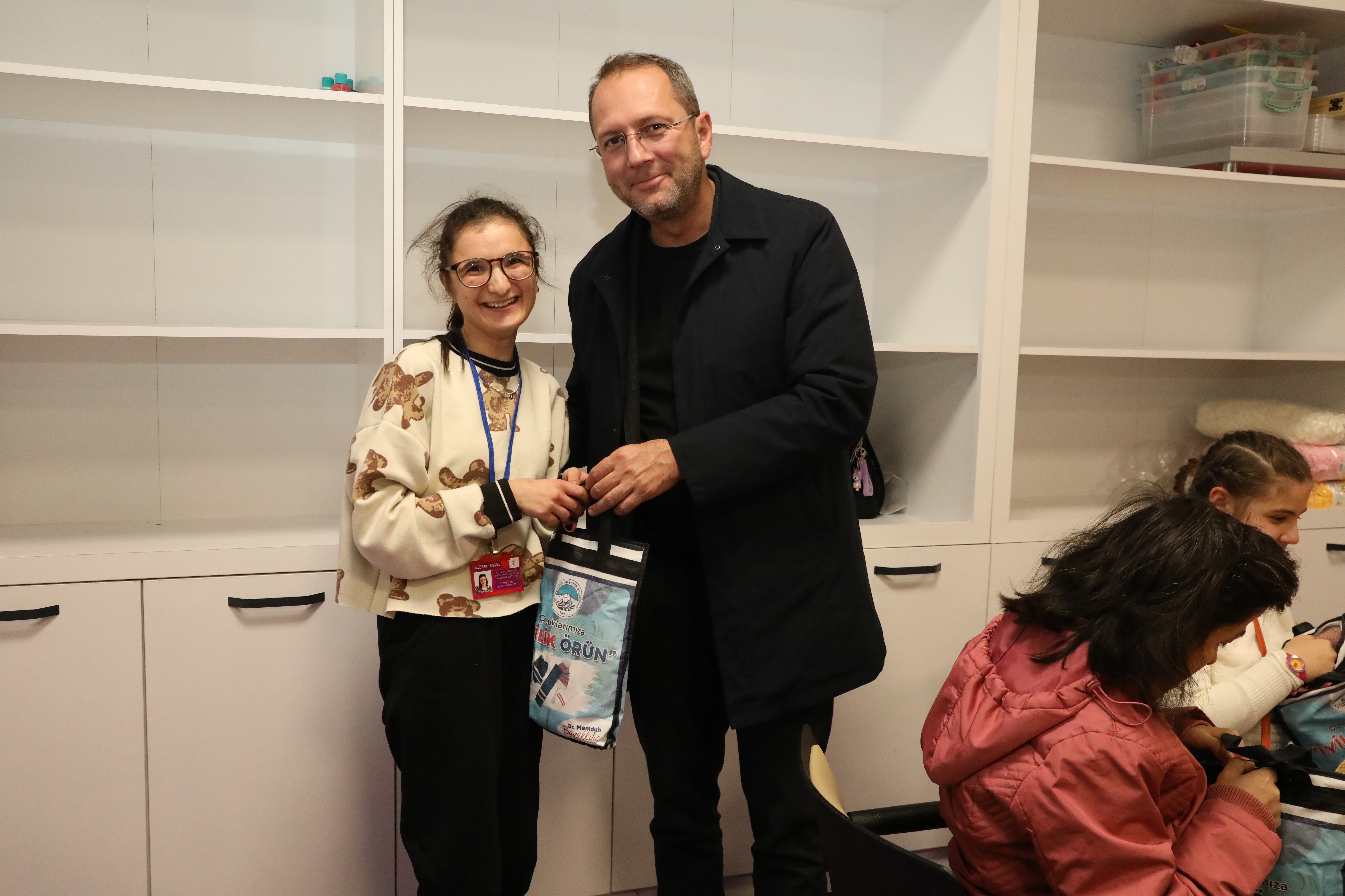 KAYMEK öğretmenleri ile Engelsiz Yaşam Merkezi’nde eğitim gören 25 özel gereksinimli kız öğrencinin birlikte hazırladığı örme atkılar, Sevgi Evleri’nde kalan çocuklara hediye edilmek üzere özenle hazırlandı. Ayrıca KAYMEK öğretmenlerinin el emeğiyle hazırlanan atkı-bere takımları, Büyükşehir Belediyesi Genel Sekreter Yardımcısı Fatih Temeltaş ile İşletme ve İştirakler Daire Başkanı Erkan Küp tarafından çocuklara hediye edildi.