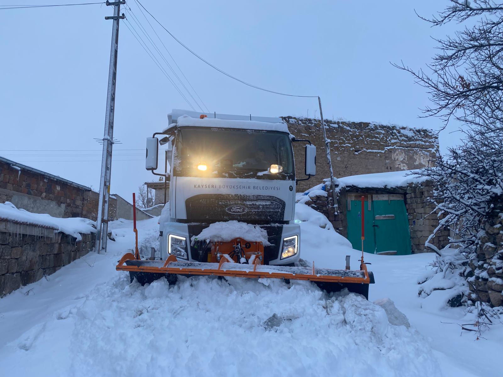 Kayseri Büyükşehir Belediyesi, kent genelinde etkisini arttıran kar yağışı ve tipi sonrası 12 ilçede toplam 140 mahalle yolunu ulaşıma açtı. Büyükşehir ekipleri, şehir merkezi ve kırsal bölgelerde 7 gün 24 saat esasına göre sahada görev yapıyor. Kayseri Büyükşehir Belediyesi, kent genelinde etkili olan yoğun kar yağışı ve tipi nedeniyle ulaşımda aksama yaşanmaması için karla mücadele çalışmalarını aralıksız sürdürüyor. Başkan Dr. Memduh Büyükkılıç’ın “beyaz altın” olarak nitelendirdiği kar yağışı sonrası, Büyükşehir Belediyesi merkez ve kırsal ilçelerde tüm imkânlarını seferber etti. Fen İşleri, Kırsal Hizmetler ile Park ve Bahçeler Daire Başkanlıkları koordinasyonunda yürütülen çalışmalarda Büyükşehir, şehir merkezi ve kırsal alanlarda toplam 156 araç ve 421 personel 7/24 esasına göre görev yapıyor. Kar yağışı öncesinde alınan tedbirler sayesinde ekipler, özellikle yüksek kesimler ve kırsal bölgelerde kapanan yolları kısa sürede yeniden ulaşıma açtı.Kırsal Hizmetler Daire Başkanlığı ekipleri tarafından 148 personel ve 85 araçla yürütülen çalışmalar kapsamında; Akkışla ilçesinde 2, Bünyan’da 22, Develi’de 23, Felahiye’de 8, Hacılar’da 2, Kocasinan’da 20, Pınarbaşı’da 10, Sarıoğlan’da 12, Sarız’da 8, Tomarza’da 10, Yahyalı’da 15 ve Yeşilhisar’da 8 mahalle yolu olmak üzere 12 ilçede, toplam 1280 kilometrelik yol ağında 140 mahalle yolu ulaşıma açıldı.