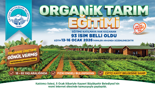Kayseri Büyükşehir Belediyesi’nin 2026 sezonuna yönelik düzenlediği Organik Tarım Temel Eğitim Programı’na başvuran 108 kişi arasından eğitime katılmaya hak kazanan 93 isim belli oldu. Eğitimler 13 Ocak’ta başlayacak.