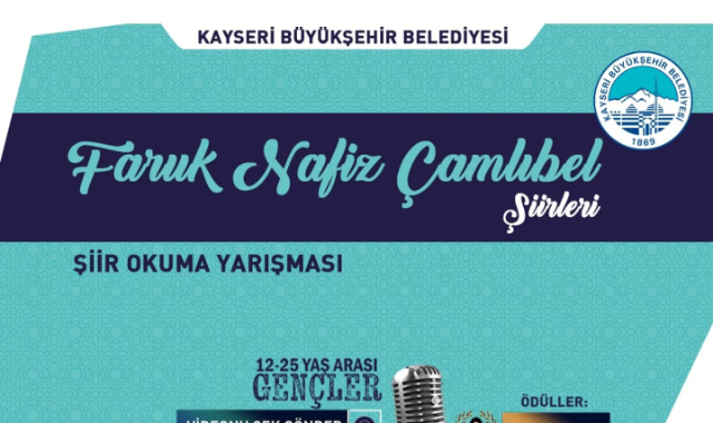 Büyükşehir Belediyesi bünyesindeki Kayseri Mesleki Eğitim ve Kültür A.Ş. (KAYMEK) tarafından Faruk Nafiz Çamlıbel şiirleri şiir okuma yarışması düzenleniyor. Başvuruları süren yarışmada 12-25 yaş aralığındaki gençler, kendi yorumları ile şiirleri canlandıracak, duyguları ile edebiyat dünyasının önemli bir ismi olan Çamlıbel’in duygu dolu şiirlerini seslendirecek.