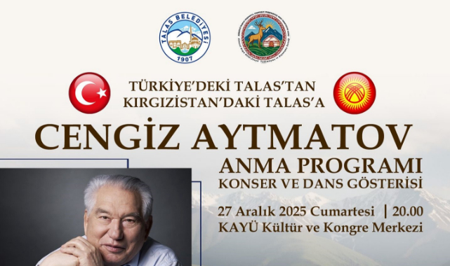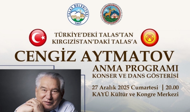 Talas Belediyesi, Türk dünyasının ortak vicdanı, insanlığın ortak sesi olan büyük yazar Cengiz Aytmatov’u anlamlı bir programla anıyor. "Türkiye’deki Talas’tan Kırgızistan’daki Talas’a" başlığıyla düzenlenen Cengiz Aytmatov Anma Programı, kültürün sınır tanımayan gücünü sanat aracılığıyla bir kez daha gözler önüne serecek.