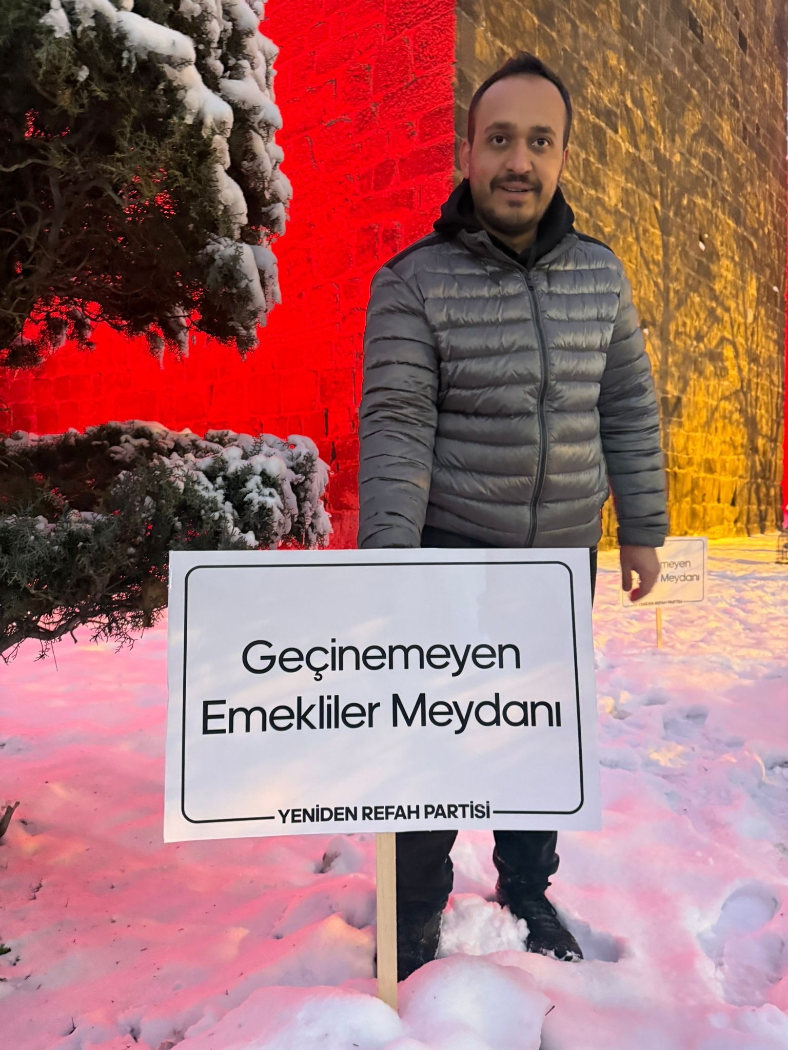 "Madem Kayseri’de bir isim değişikliği furyası başlattınız, madem gerçekleri görmezden geliyorsunuz; Yeniden Refah Partisi olarak bizim de size bir teklifimiz var. O zaman biz de Yeniden Refah Partisi olarak emeklilerimize reva gördüğünüz bu meydanın adını ‘Geçinemeyen Emekliler Meydanı’ koyuyoruz. Böylelikle meydandan her geçtiğinizde, o tabelaya her baktığınızda, maaşıyla kirasını ödeyemeyen amcamızı, torununa harçlık veremeyen teyzemizi hatırlayın. Biz bu tabelayı buraya, vicdanlarınıza asıyoruz."