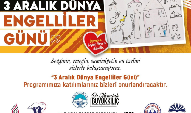 3 Aralık Dünya Engelliler Günü, her yıl olduğu gibi engelli bireylerin toplumsal yaşama daha aktif katılımlarını sağlamak ve onların haklarına dikkat çekmek amacıyla çeşitli etkinliklerle kutlanıyor. Bu yıl; Kayseri Büyükşehir Belediyesi, Dr. Memduh Büyükkılıç’ın liderliğinde özel ihtiyaçlı bireyler için farkındalık oluşturmayı amaçlayan anlamlı bir program düzenleyecek.Sevginin, Emeğin ve Samimiyetin Buluştuğu Bir GünErciyes Kültür Merkezi’nde 3 Aralık 2025 Çarşamba günü saat 13.00’te başlayacak olan program, Kayseri Büyükşehir Belediyesi’nin özel ihtiyaçlı bireylere yönelik sunduğu hizmetlerin bir yansıması olacak. KAYMEK, Besime Özderici Engelsiz Yaşam Merkezi, Erciyes Üniversitesi ve ZİÇEV iş birliğiyle düzenlenen etkinlik, özel ihtiyaçlı bireylerin yaşam kalitesini arttırmak amacıyla yapılan projeleri ve katkıları vurgulayacak.