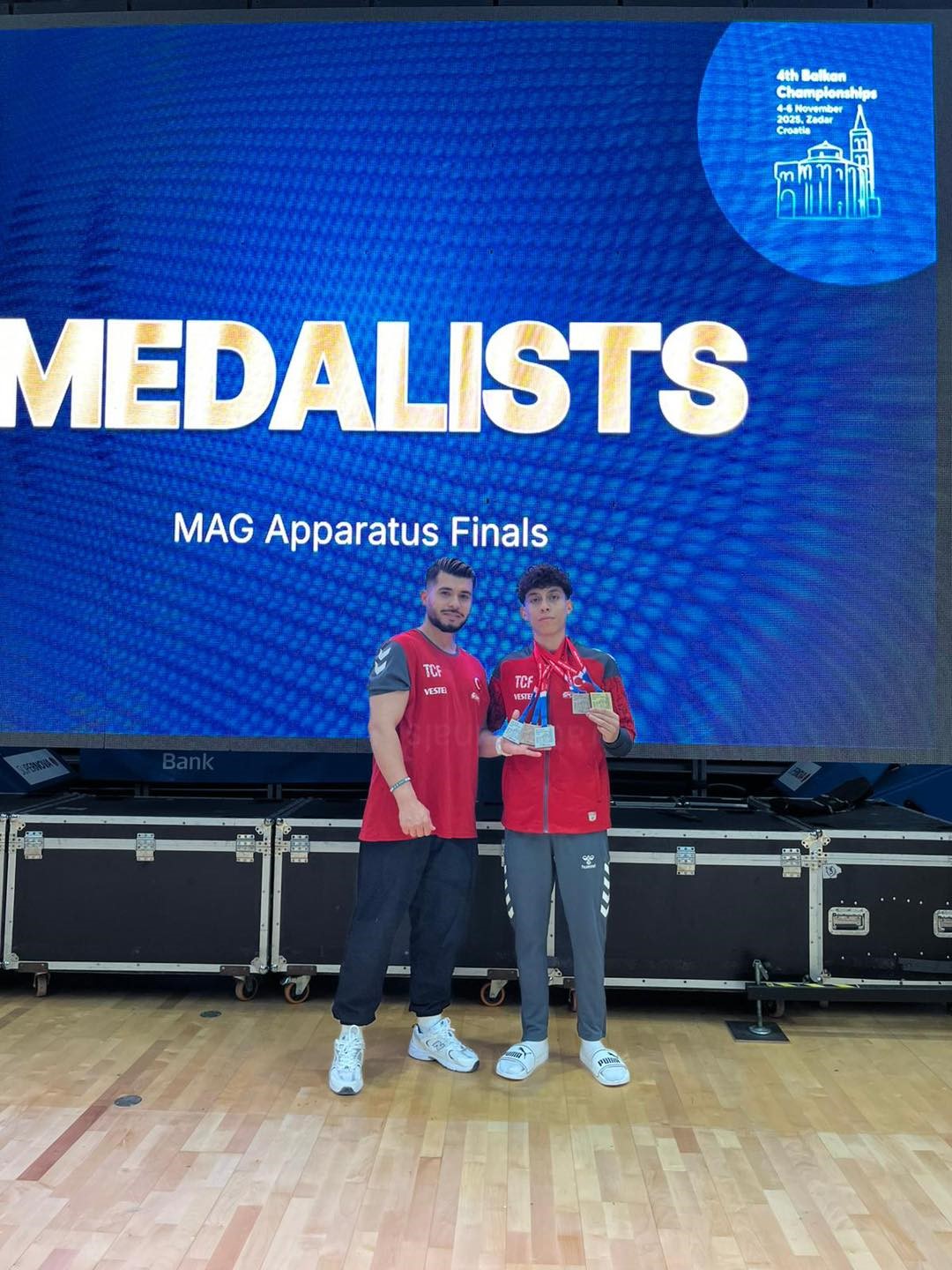 Şampiyona finalinde rakiplerini geriden bırakan Mustafa Yiğit Dur; Yer Aleti Altın Madalya (Balkan Şampiyonu), Takım ve Atlama Masası Gümüş Madalya ve Genel Tasnif Bronz Madalya kazanırken, Hüseyin Emir ise Takım, Paralel, Barfiks Gümüş Madalya ile Genel Tasnif Atlama Bronz Madalya elde etti.