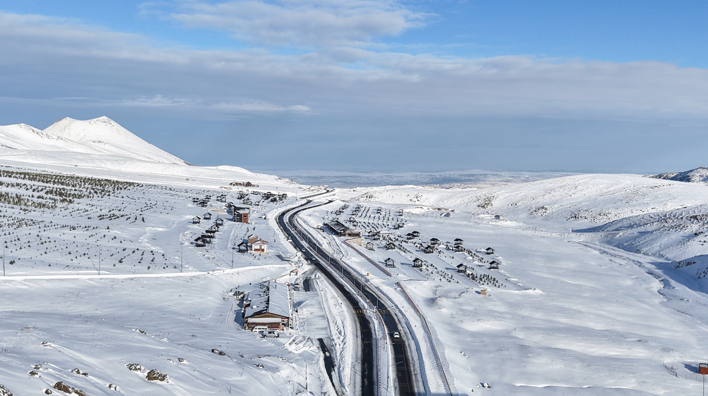 Erciyes'e giden yollar, pistler ve dağ havadan dron ile görüntülendi.
