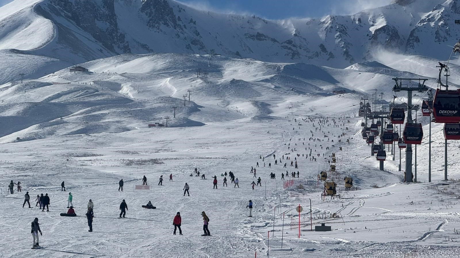Türkiye'nin en önemli kayak merkezlerinden olan Erciyes Kayak Merkezi, hafta sonu binlerce turist ağırladı. Yerli ve yabancı turistler pistlerde yoğunluk oluştururken, Tekir, Develi, Hacılar ve Hisarcık kapılardaki tesislerde kayak ve snowboard yaparak karın tadını çıkardı.