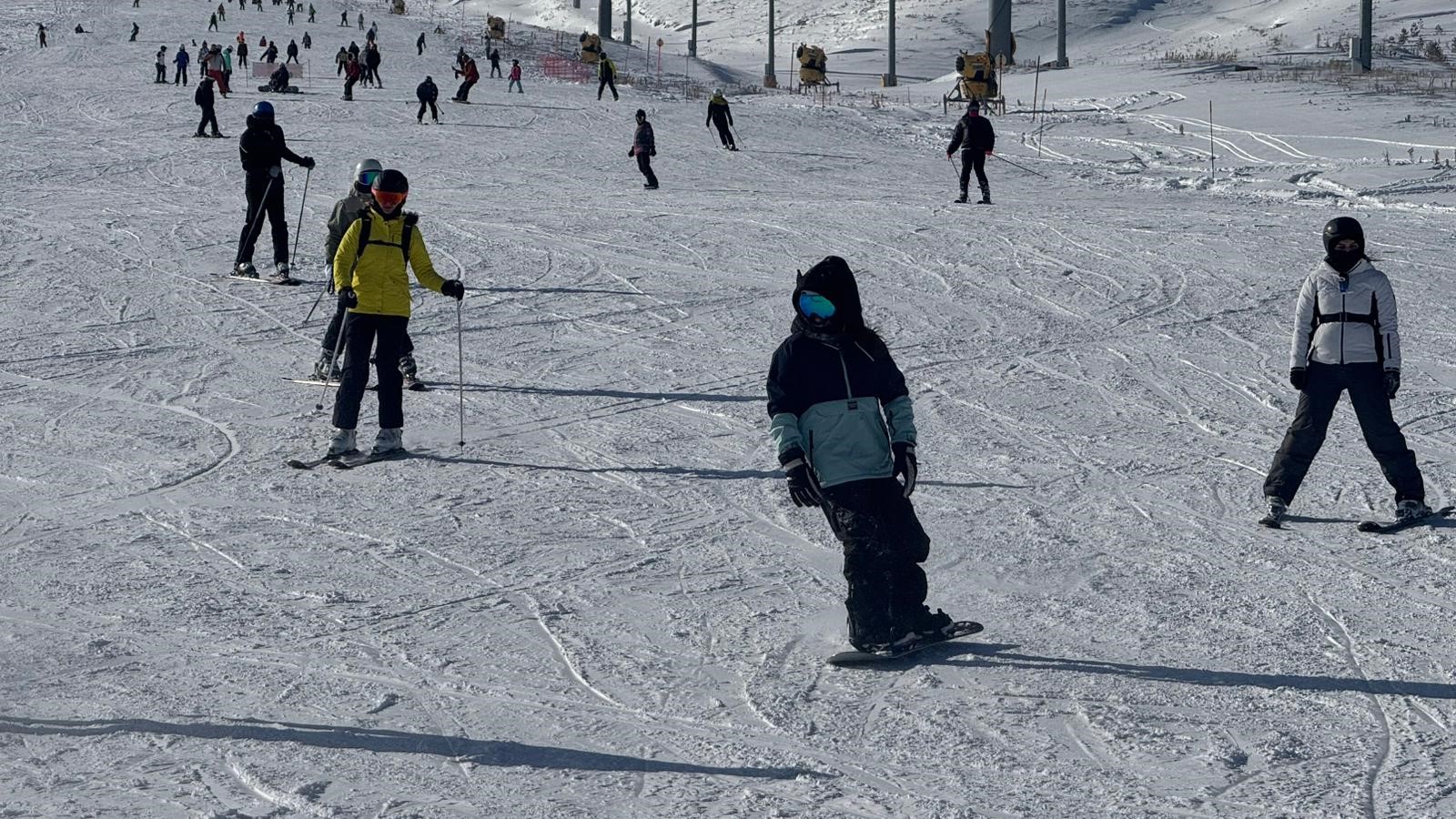 Türkiye'nin önemli kış turizm merkezlerinden olan Erciyes'te hafta sonu pistler kayak severlerle doldu.