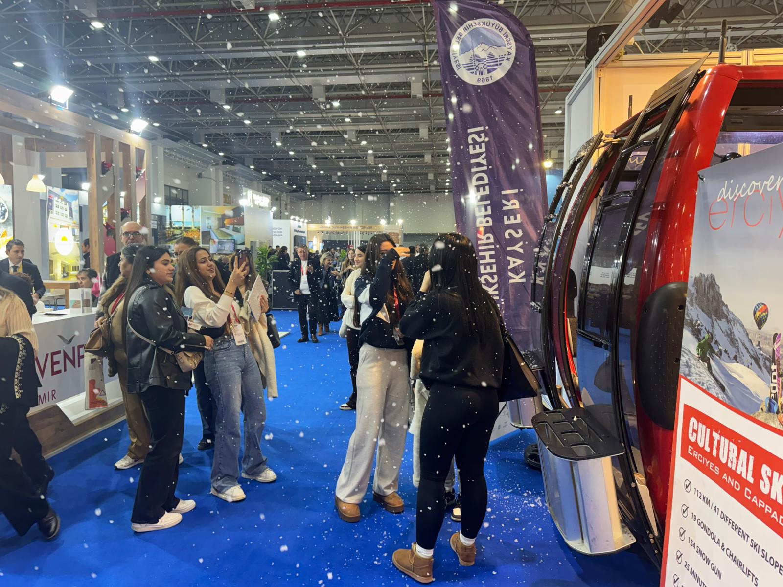 Oran Kalkınma Ajansı ve Kayseri Otelciler Derneği iş birliğiyle, Erciyes A.Ş. destekleriyle hazırlanan stantta yer alan kabin gondol ve suni kar uygulaması ziyaretçilerden büyük beğeni topladı.