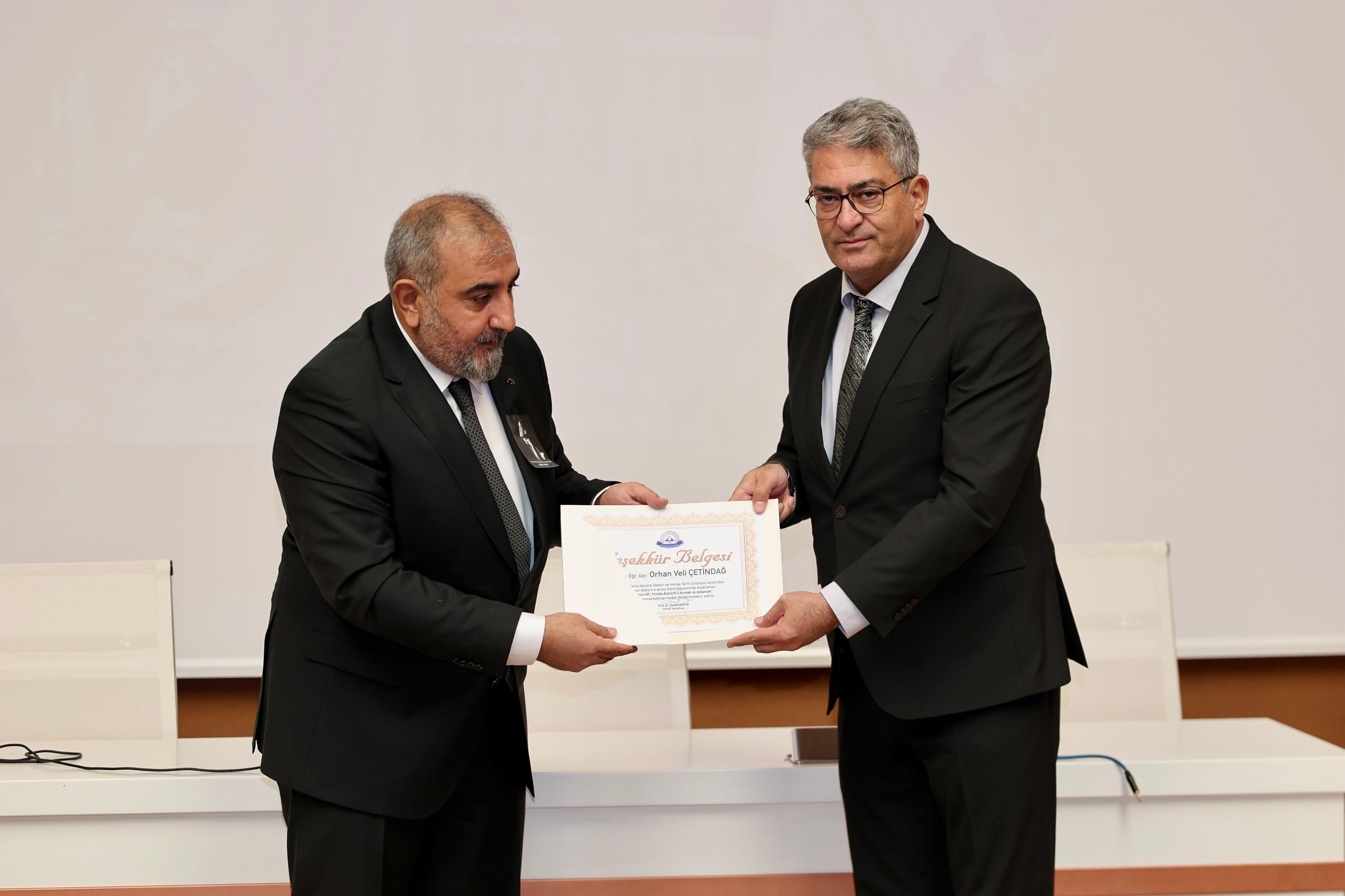 Konferans Rektör Yardımcısı Prof. Dr. Oktay Özkan’ın Öğr. Gör. Orhan Veli Çetindağ’a teşekkür belgesi takdiminin ardından sona erdi.