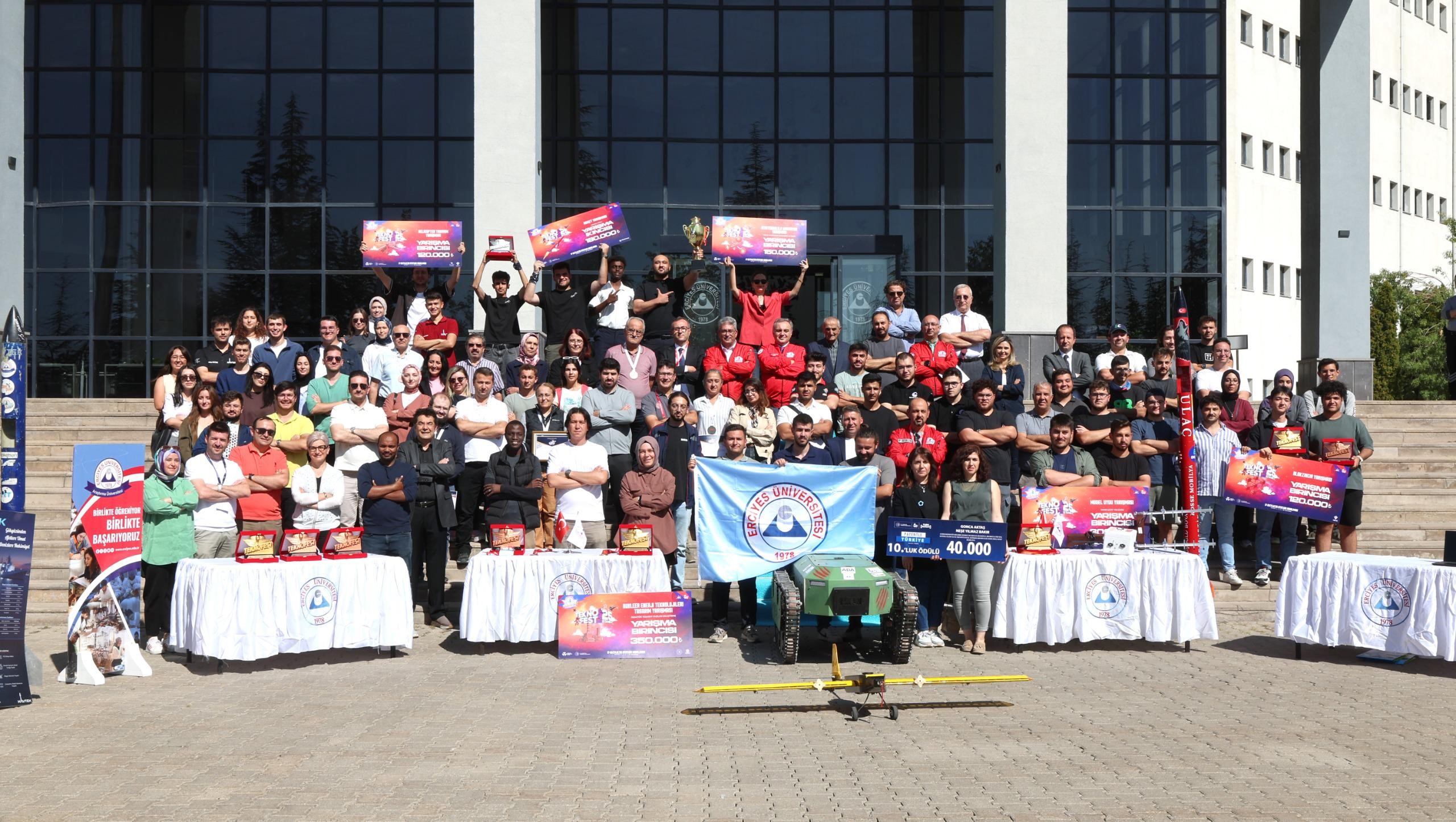 ERÜ öğrencilerinden oluşan 27 takım ise finale kalma başarısı gösterdi. HAVTEK Model Uydu Takımı Model Uydu Kategorisi, HAVTEK Dikey İnişli Roket Takımı, Dikey İnişli Roket Kategorisi, HAVTEK Yüksek İrtifa Roket Takımı Yüksek İrtifa Roket Kategorisi, HOKED Araştırma Takımı Eğitim Teknolojileri Yarışması, VORTEX UAV TAKIMI Uluslararası İnsansız Hava Aracı Yarışması Sabit Kanat Kategorisi, TUFAN Takımı İnsansız Kara Aracı Yarışması, ARFSAN Takımı Sanayide Dijital Teknolojiler Yarışması, NeuroScan Takımı Sağlıkta Yapay Zeka yarışması, Mergen Takımı Model Uydu Kategori-1’de, Eksozom-Gen Takımı Biyoteknoloji İnovasyon Yarışması, MSAI-LAB Biyoteknoloji İnovasyon Yarışması, Deniz Yıldızı Takımı Çevre ve Enerji Teknolojileri Yarışması, Quantum Uluslar Arası Efficiency Challenge Elektrikli Araç Yarışları Elektromobil Kategorisi, Voltacar Hidromobil Araç Yarışması, ERU - AI Herbert Simon Finansal Teknolojilerinde, Erciyes Otonom Robotaksi Binek Otonom Araç Yarışı Özgün Araç Kategorisi, Quantum Orta İrtifa Roket Kategorisi, Edu-poration Takımı Eğitim Teknolojileri, Turna Bio Takımı Onkolojide 3T Yarışması, GeneCarrier Takımı Biyoteknoloji İnovasyon Yarışması Üniversite ve Üzeri Proje Kategorisi, ENRG-Soft Takımı Nükleer Enerji Teknolojileri Tasarım Yarışması, ENRG-Hard Takımı Nükleer Enerji Teknolojileri Tasarım Yarışmasın, Quantum Takımı Blokzincir Yarışması, HAVTEK Takımı Helikopter Tasarım Yarışması, MERGEN Takımı Model Uydu Yakın Uzay Kategorisi, Volta Takımı Yüksek irtifa Roket Yarışması ve DENT-ARMOR Takımı Biyoteknoloji ve İnovasyon Yarışmasında finale kalma başarısı gösterdi.