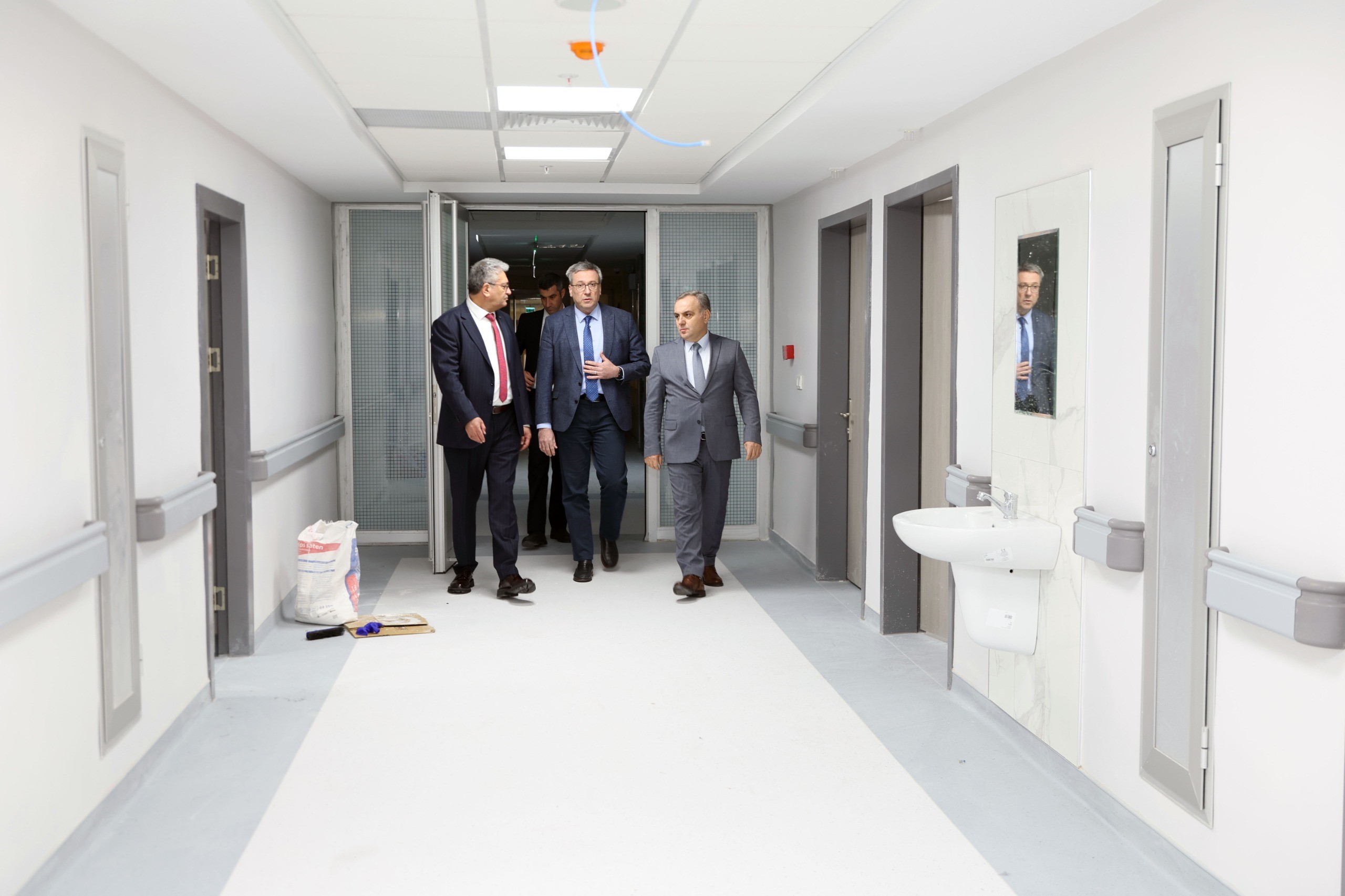 Yenilenen servisleri ziyaret eden ERÜ Rektörü Prof. Dr. Fatih Altun; 2026 yılı içerisinde yatırım planına alınan hastane binasının inşaatına başlanmadan önce mevcut binanın hizmet kalitesinin etkilenmemesi için yenileme çalışmalarına önem verdiklerini söyledi. ERÜ Rektörü Prof. Dr. Fatih Altun; Rektör Yardımcısı Prof. Dr. Oktay Özkan ile birlikte ERÜ Tıp Fakültesi Hastaneleri’nde yenileme çalışmaları devam eden servisleri ziyaret etti. Yenileme çalışmaları hakkında yetkililerden bilgi alan Rektör Prof. Dr. Altun, yeni hastane projesinin inşaat çalışmalarına başlanmadan önce ihtiyaç olan servislerde de bir yandan yenileme çalışmaları yaptıklarını söyledi. Daha önce 11 ve 12’inci katları yenilediklerini şimdide 9 ve 10’uncu katlarda yenileme çalışmalarına devam ettiklerinin altını çizen Rektör Prof. Dr. Altun; ERÜ Tıp Fakültesi Hastaneleri’ne yeni yaptırılacak olan sismik izolatörlü 800 yataklı birinci etap hastane projesinin 2026 yılı yatırım programına alındığını belirterek, mevcut hastanede yapılan yenileme çalışmalarının da ERÜ’nün genel bütçesi tarafından karşılandığının altını çizdi. Rektör Prof. Dr. Altun, şunları kaydetti;