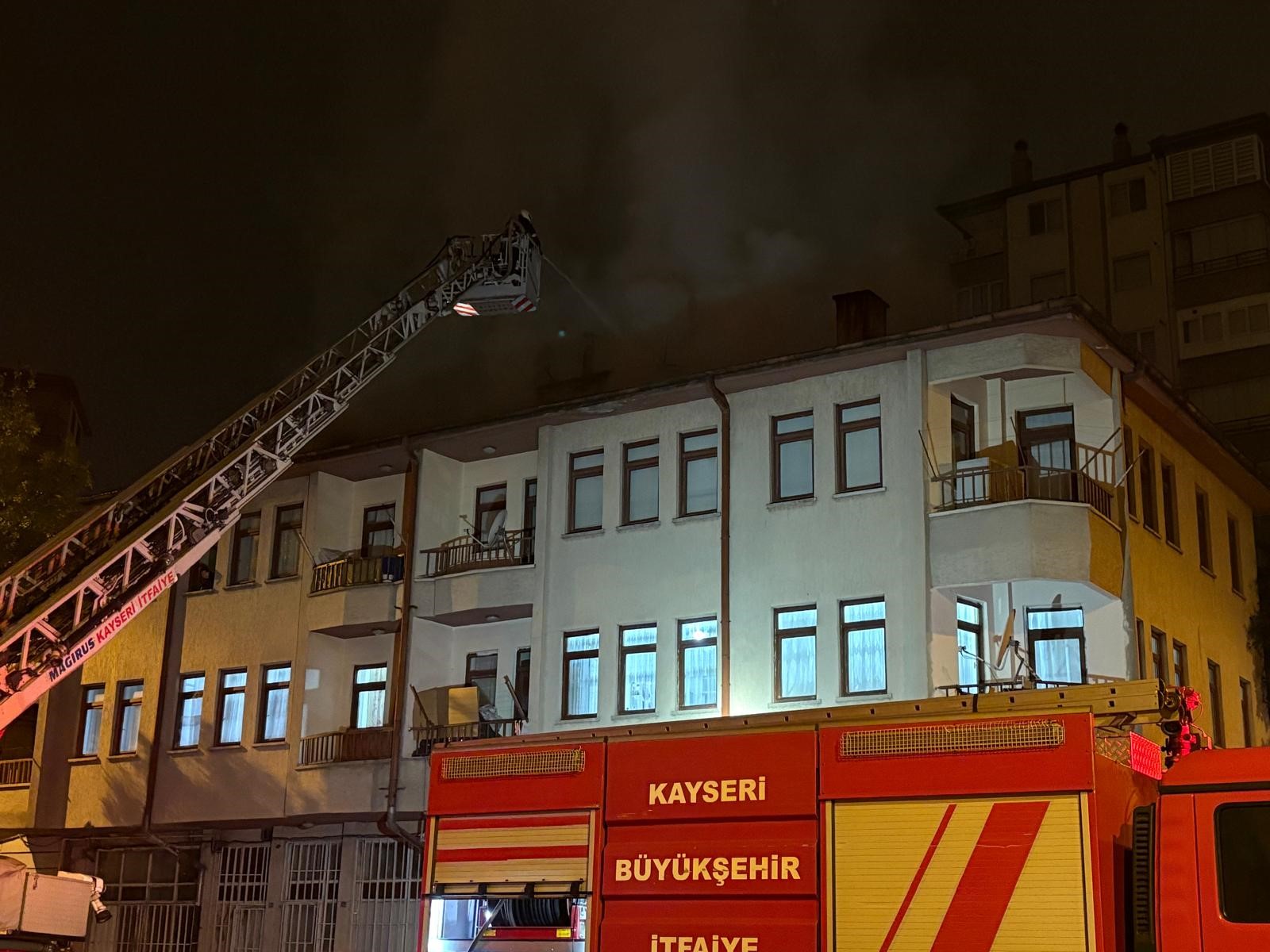 Kayseri'nin Melikgazi ilçesinde iddiaya göre eşiyle kavga ettikten sonra eve alınmayan koca sinirlenip, oturduğu binanın çatısı yaktı. Olay sonrası kaçan şahıs, polis ekipleri tarafından kısa sürede yakalandı.