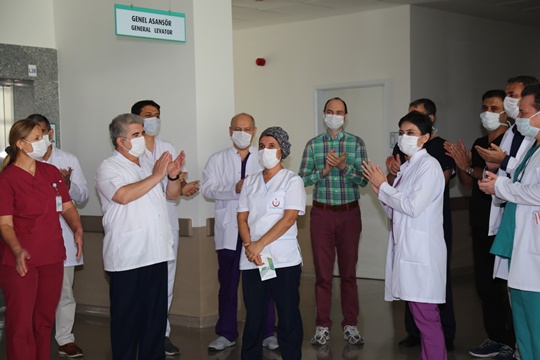 Aşı uygulandıktan sonra da hastane yönetimi, aşı için gönüllü olan Şerife Dursun’u alkışladılar.