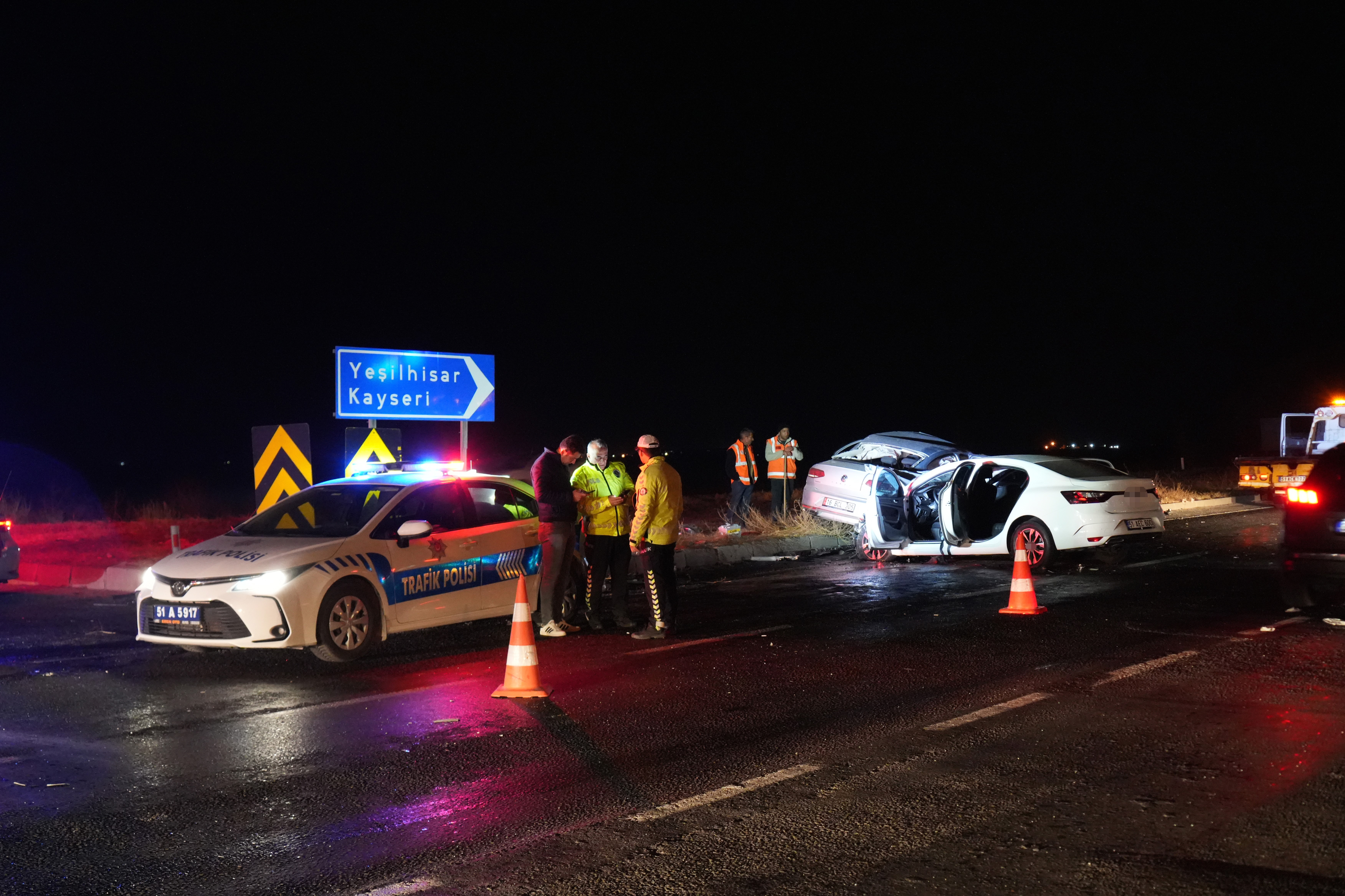 Niğde-Kayseri karayolu Çamardı kavşağında iki otomobilin çarpışması sonucu meydana gelen trafik kazasında 3 kişi hayatını kaybetti, 6 kişi yaralandı.